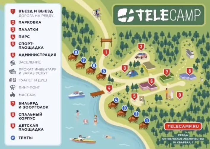Telecamp pacположился в сосновом лесу на берегу Ревдинского водохранилища. Здесь вы можете отдохнуть от городской суеты, прокатиться на лодке или сапсерфе, заняться йогой или просто провести время наедине с собой. Приехать к нам можно одному, всей семьей или большой веселой компанией: мы построили 8 уютных глэмпингов, в которых есть все необходимое для комфортного отдыха и даже работы. Уикенд вдали от шумного города зарядит вас энергией и подарит яркие впечатления!