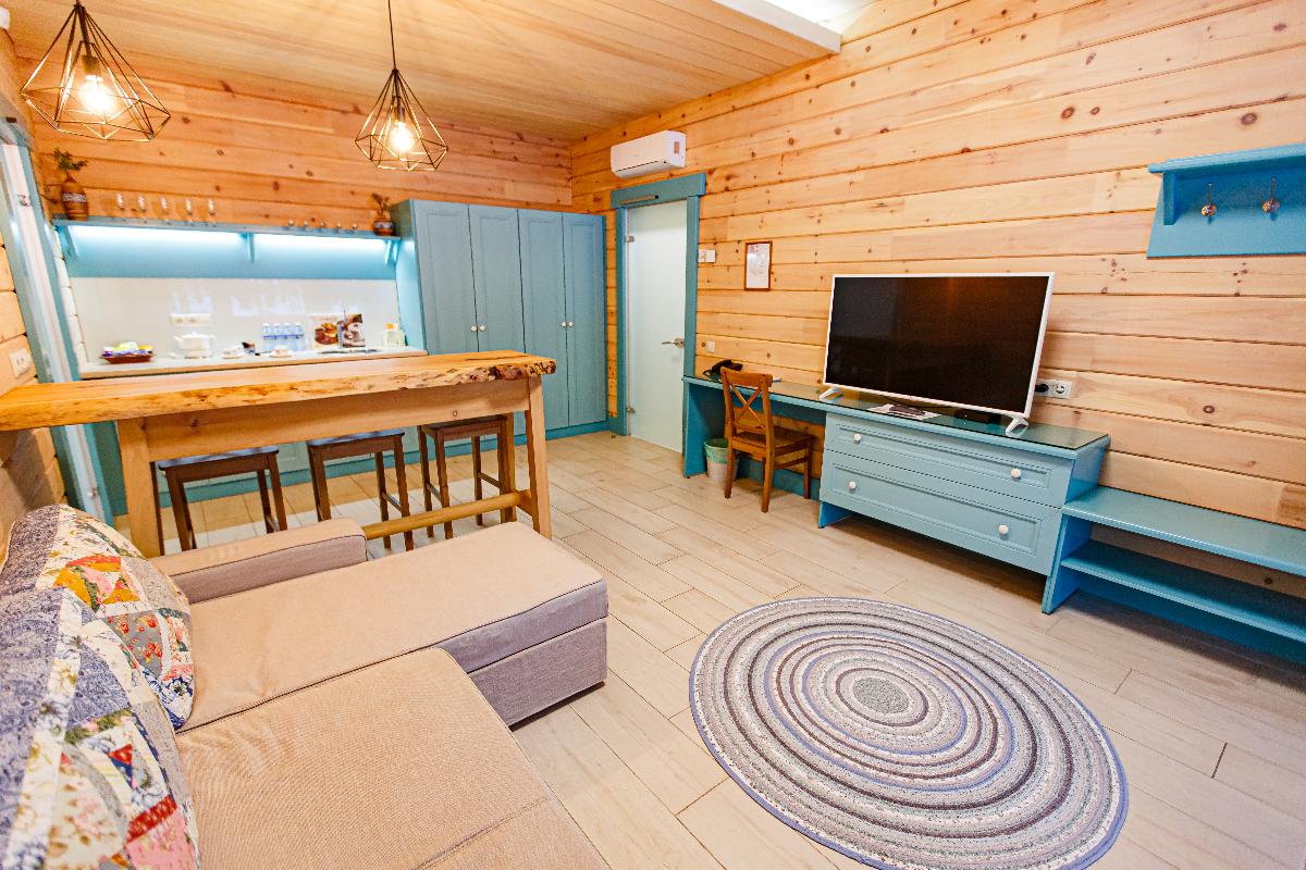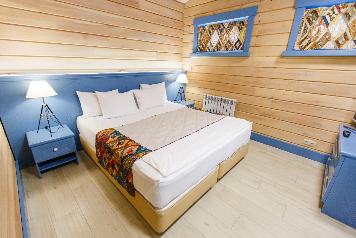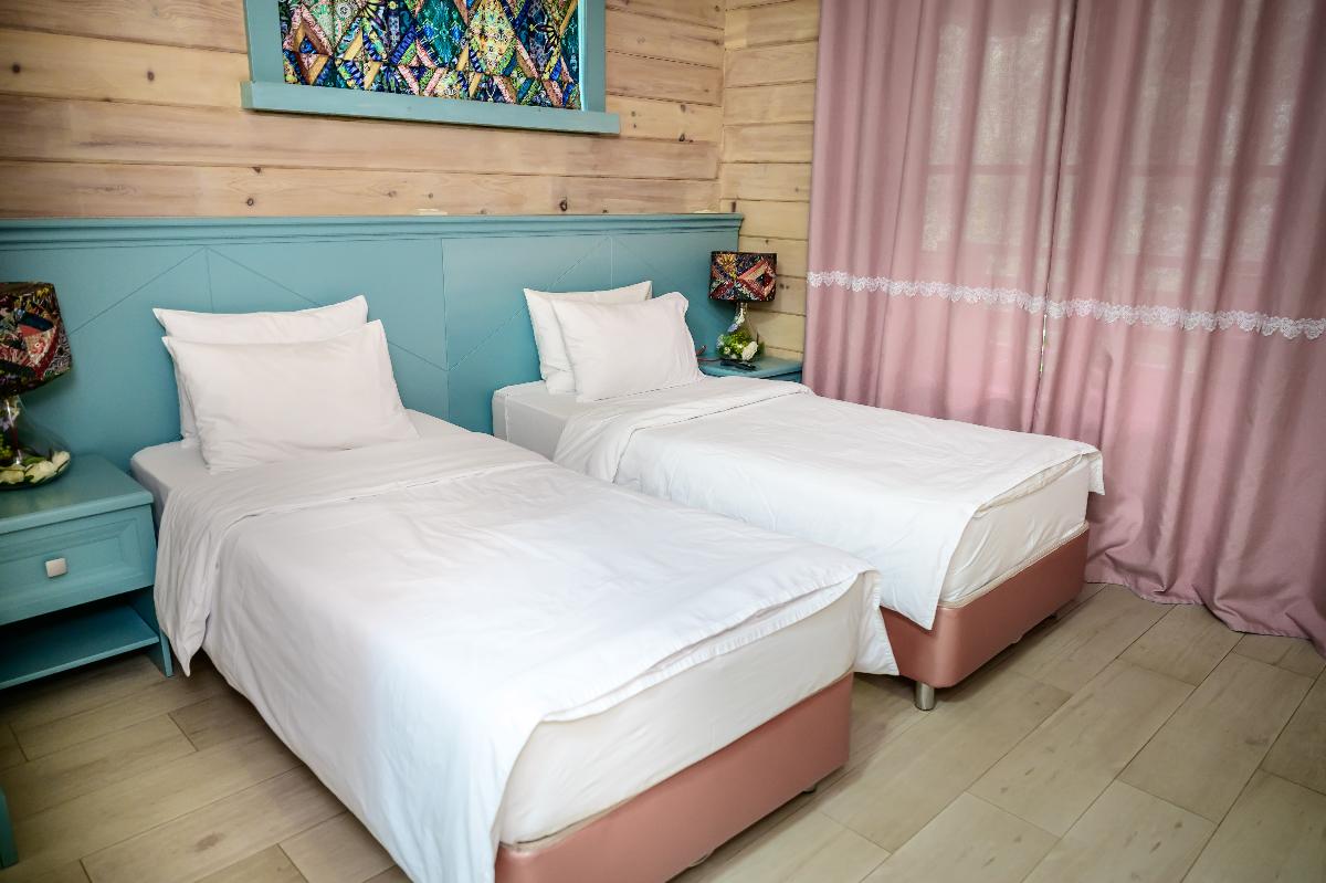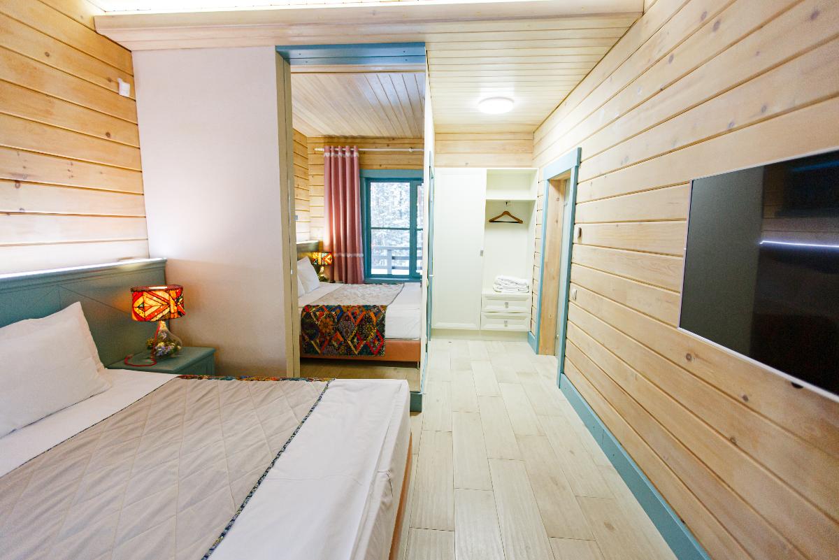 Номер класса «Полулюкс» горного отеля «Тэнери» - расположен в отдельно стоящем комплексе из четырех номеров. «Полулюкс» отличный вариант для отдыха вдвоем, в номере две односпальные кровати, с возможностью двуспального варианта, удобная чайная зона, холодильник, гардероб и ванная комната. Тёплые полы, мягкие халаты, декор выполненный в стиле Hand Made создают уникальную атмосферу уюта и комфорта для вашего отдыха. В стоимость проживания входит: мангальная зона, костровая беседка, детская комната, детская игровая площадка, уличный тренажёрный комплекс. Проживание с домашними животными - запрещено.(Примечание к номеру Полулюкс - хорошая слышимость).