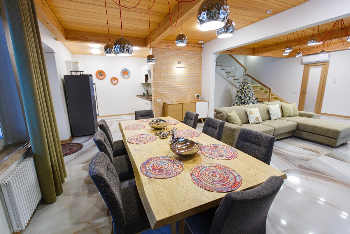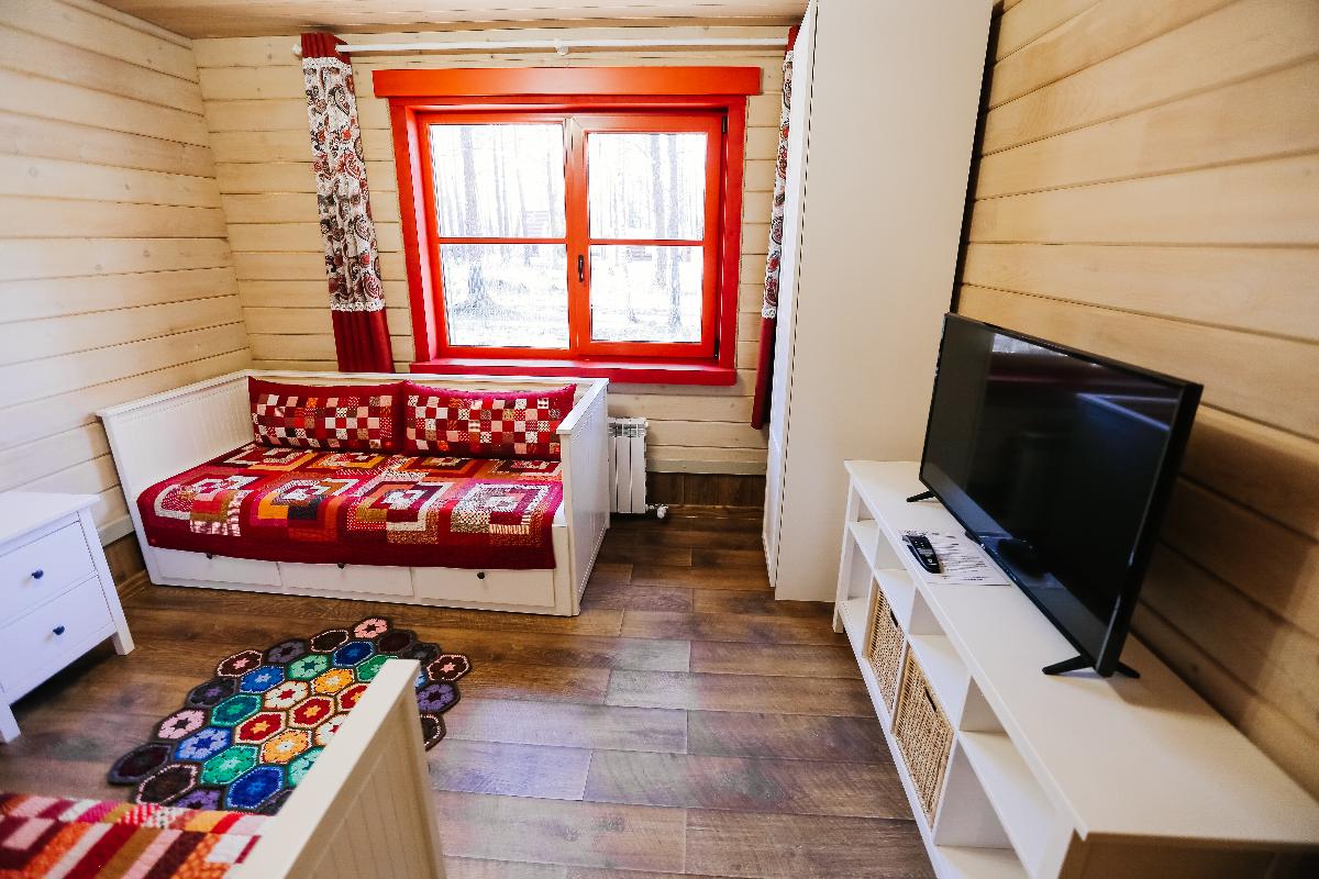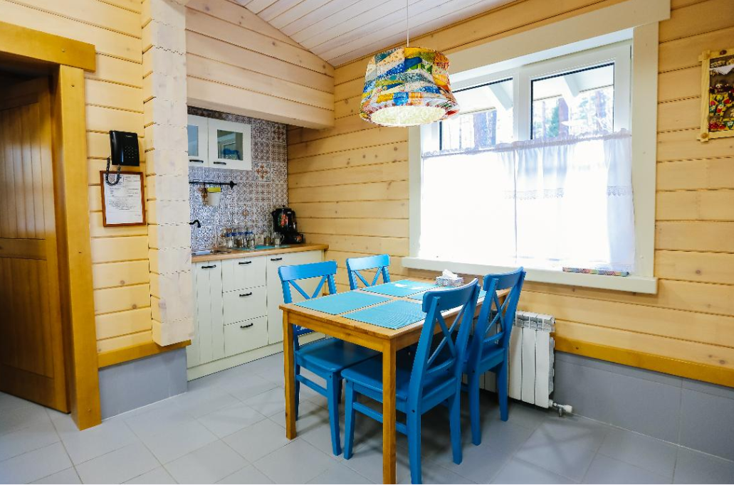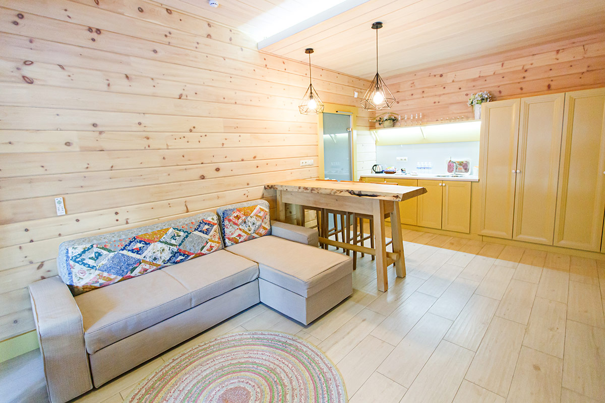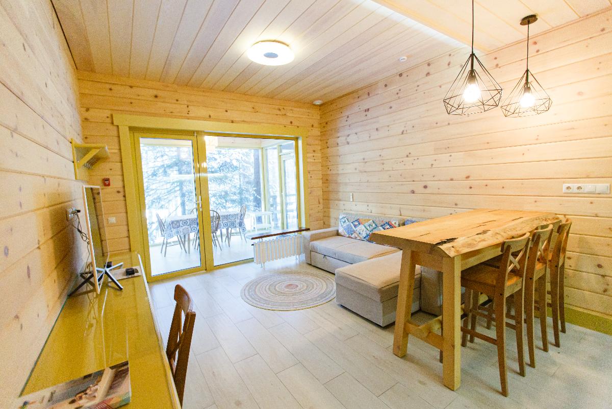 «Семейный дом» - великолепный вариант для отдыха в кругу семьи. В доме удобно расположены две спальни с двуспальной и односпальными кроватями, специально для концепции семейного отдыха дом оборудован многофункциональной кухней, со всем необходимым инвентарем и удобной обеденной зоной для вашей семьи. Просторная ванная комната и регулируемые теплые полы во всём доме, делают отдых для вашей семьи еще более уютным и комфортным. В стоимость проживания входит: мангальная зона, костровая беседка, детская комната, детская игровая площадка, уличный тренажёрный комплекс. Проживание с домашними животными - запрещено.