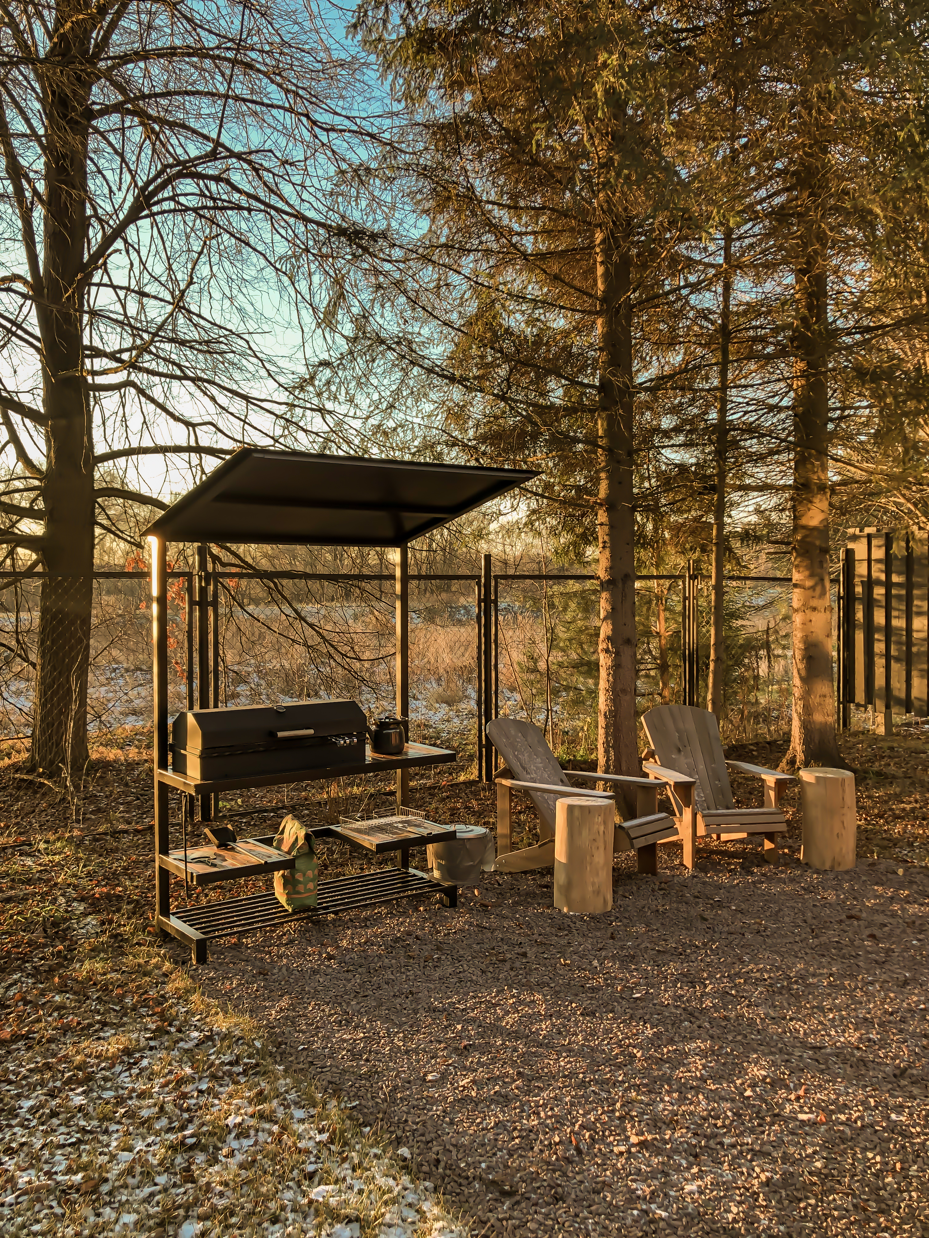 Предоставляется: уголь, жидкость для розжига и инвентарь для гриля.