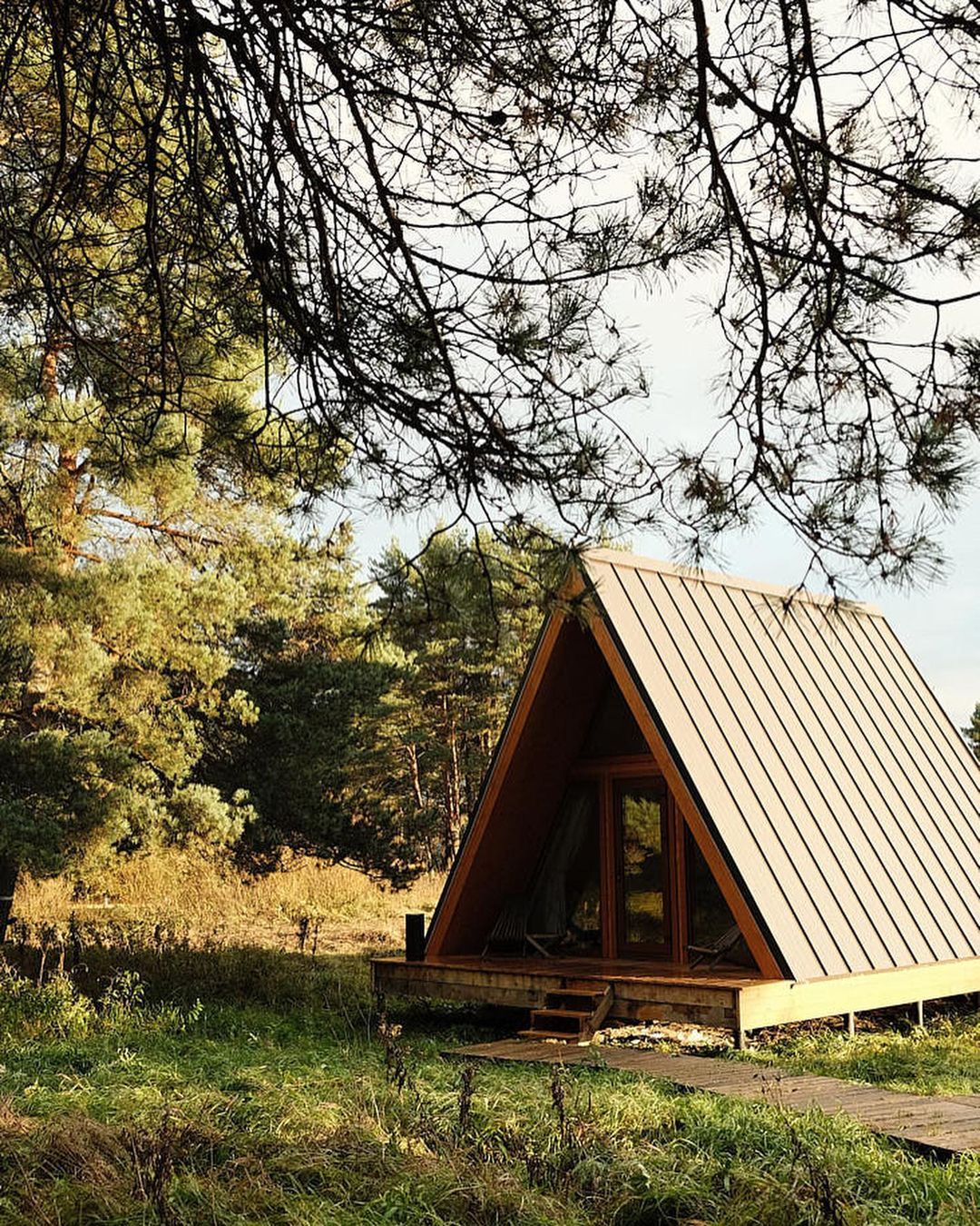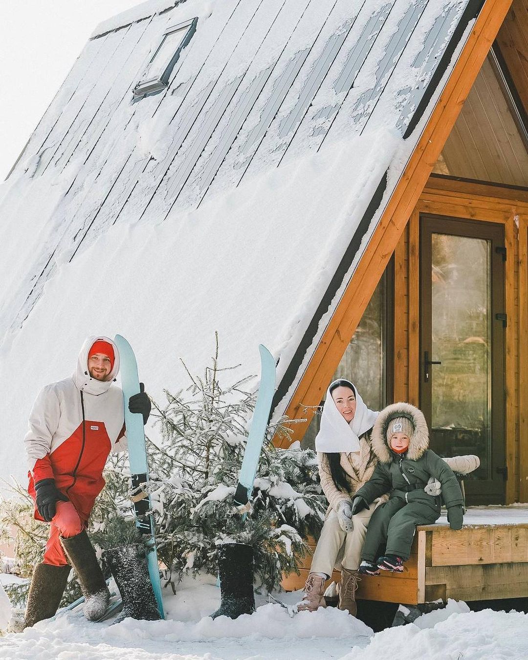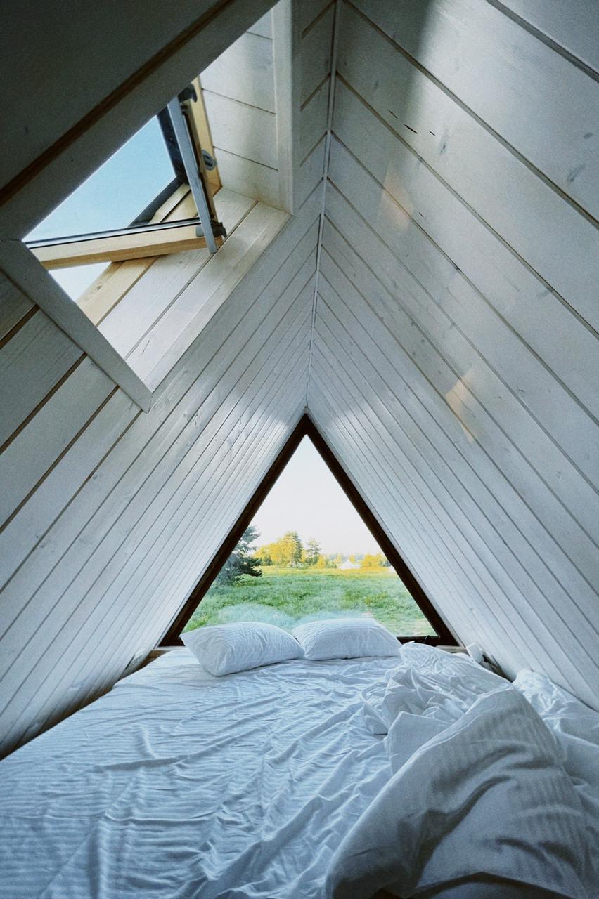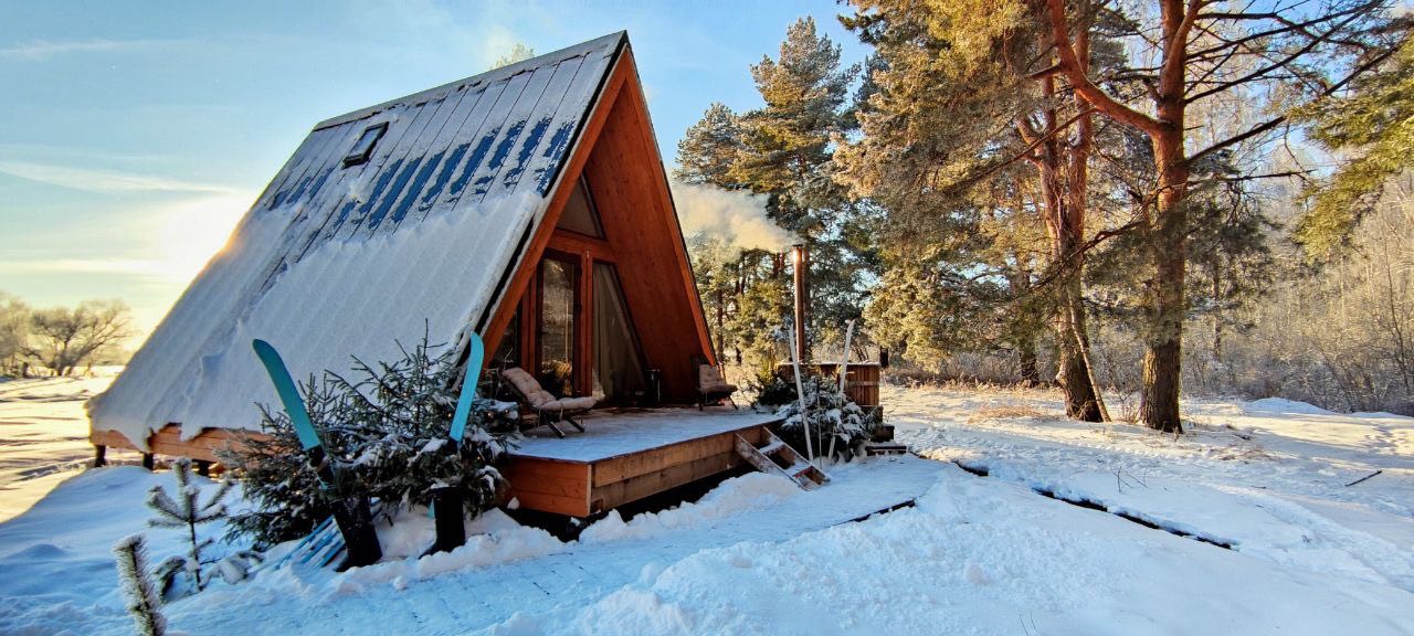 Размещение в комфортабельном круглогодичном треугольном домике. Во всем мире его называют А-фрейм (в форме буквы А):