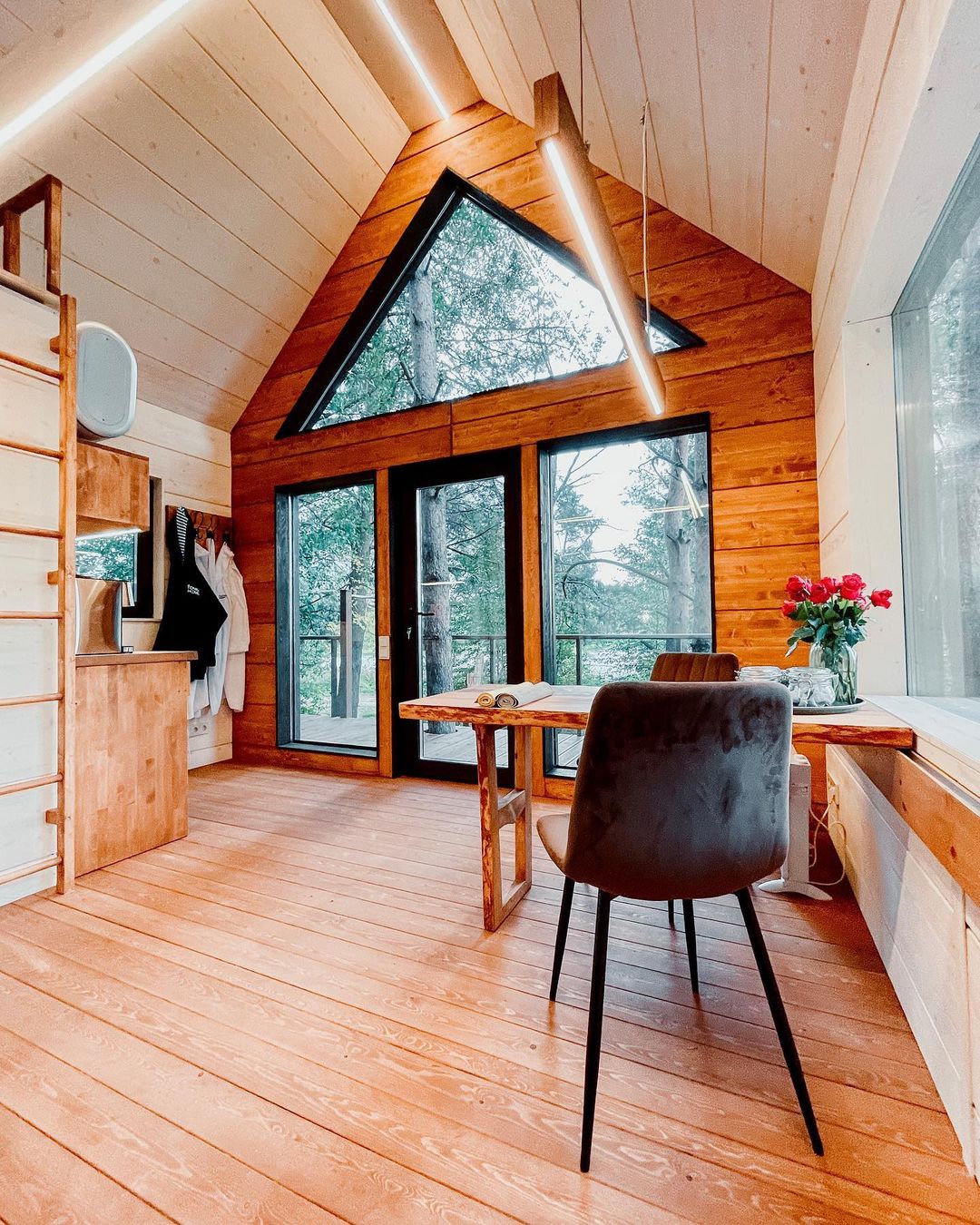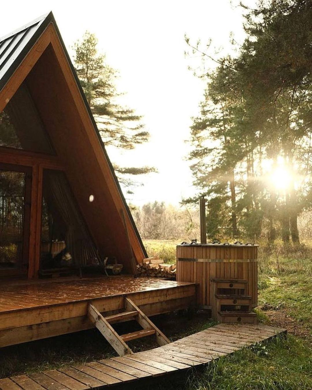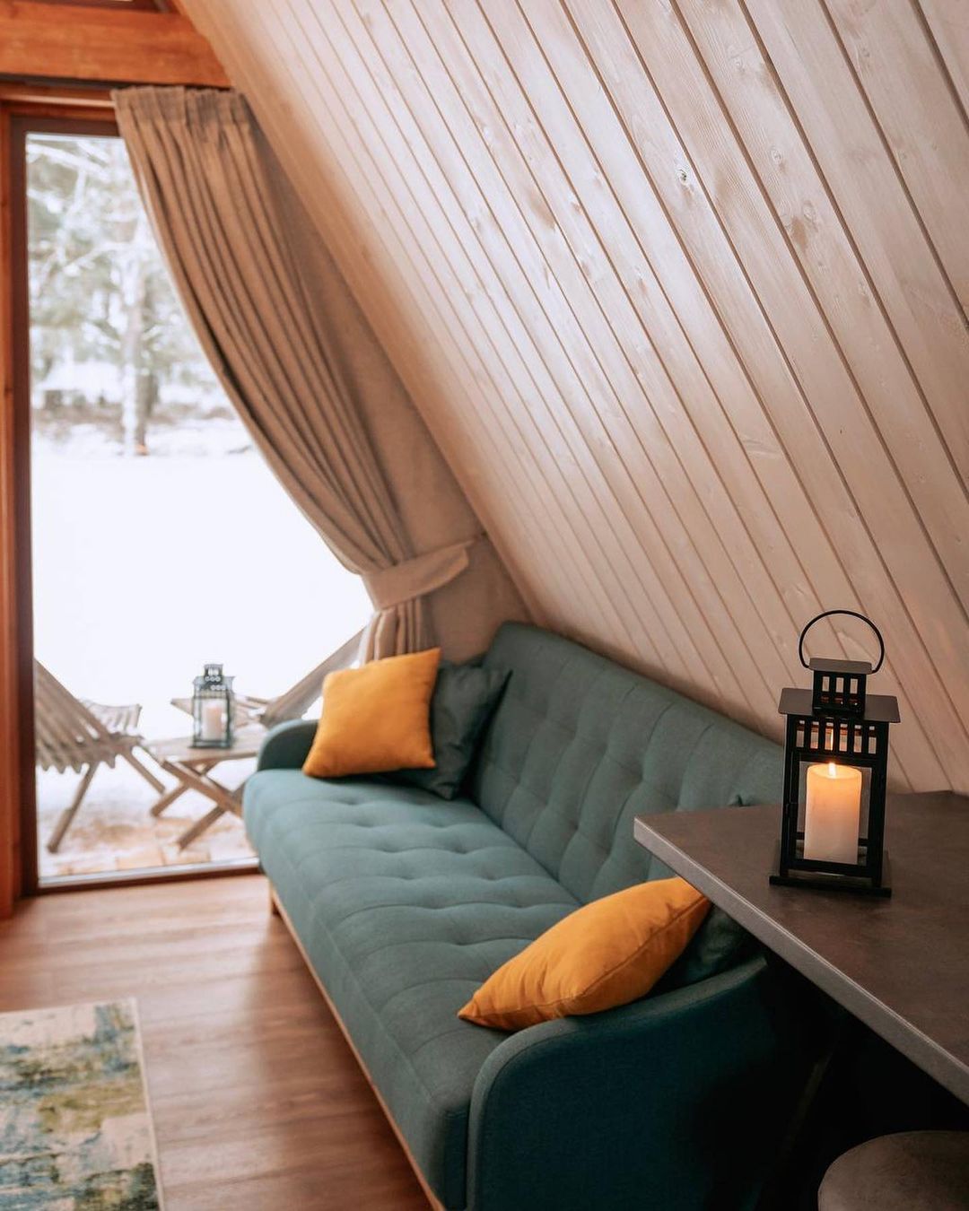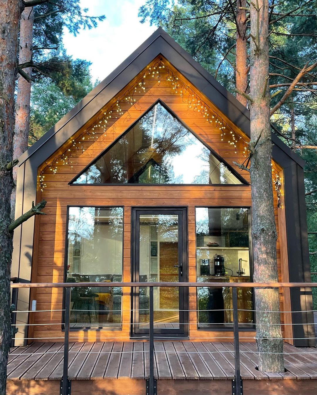 Размещение в комфортабельном круглогодичном треугольном домике. Во всем мире его называют А-фрейм (в форме буквы А):