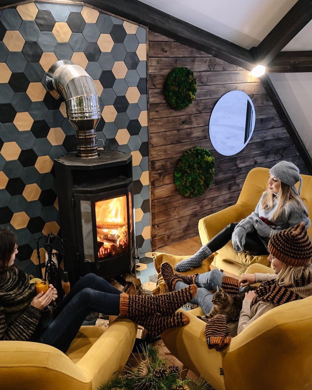 • уютный камин;