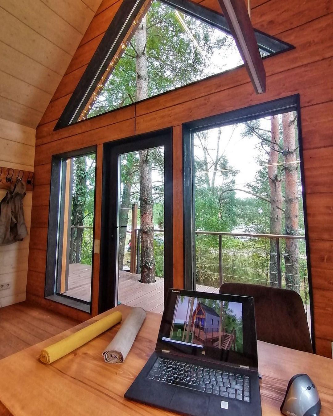 • панорамные окна, позволяющие максимально слиться с природой;