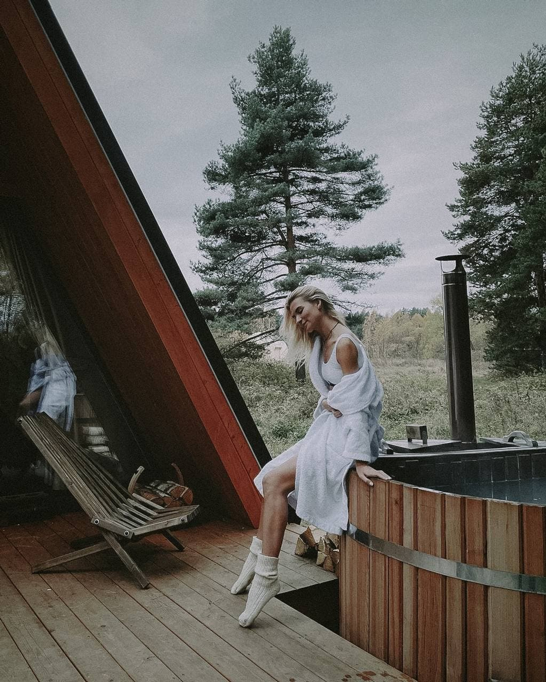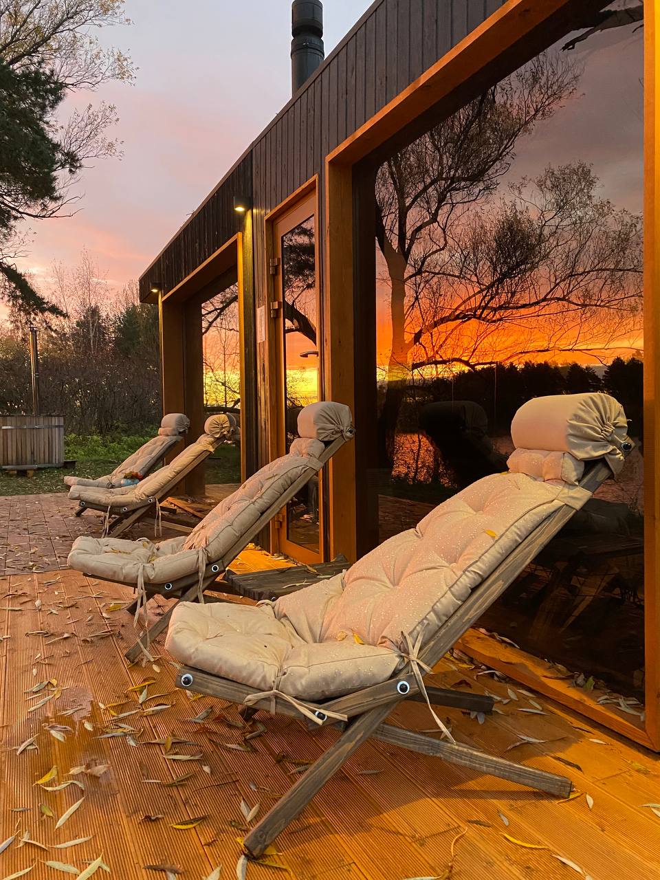 — сауна с панорамным окном и двумя купелями фурако.