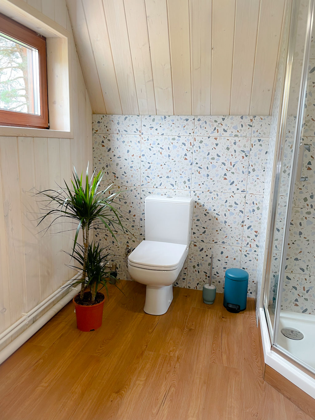- В каждом домике собственная душевая с туалетом