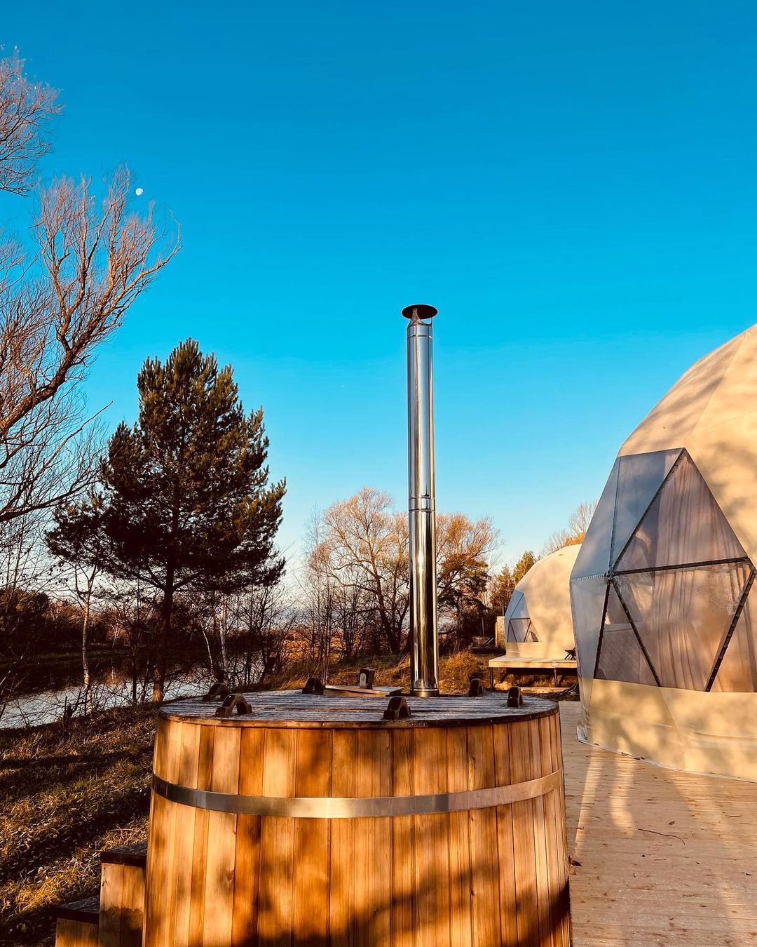 Размещение в комфортабельном круглогодичном куполе с купелью Фурако на терассе:
