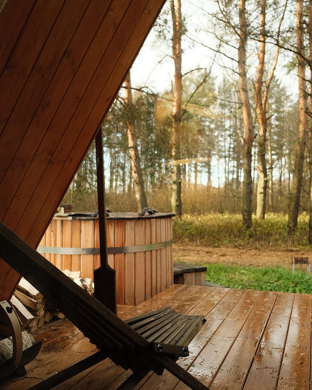 - Парковка, качели и шезлонги, сауна с подогреваемой уличной купелью фурако