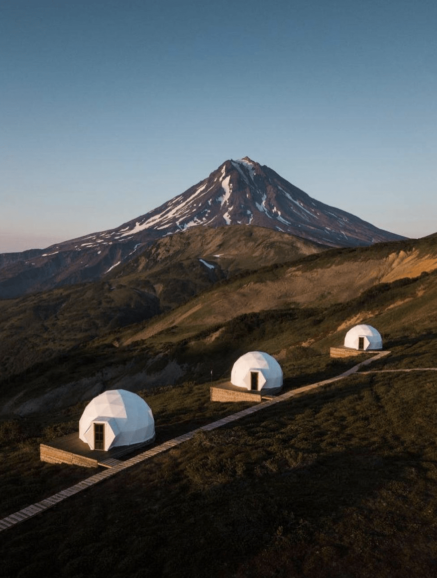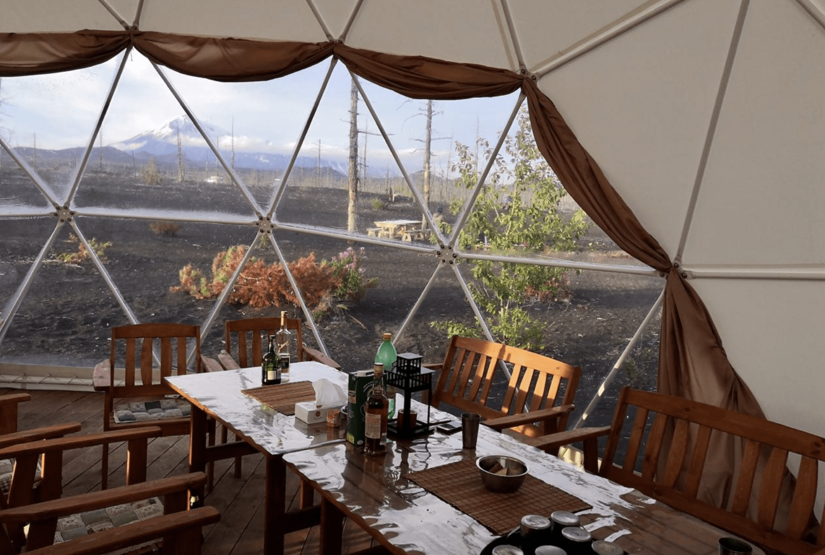 Шесть комфортных, отапливаемых шатров, большая столовая с панорамными окнами, видом на вулканы и Мертвый лес позволят вам насладится настоящей вулканической природой Камчатки в условиях абсолютного комфорта
