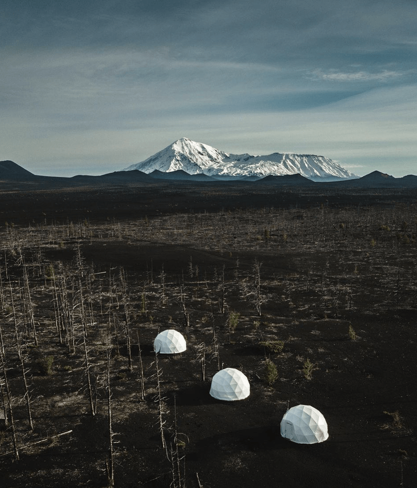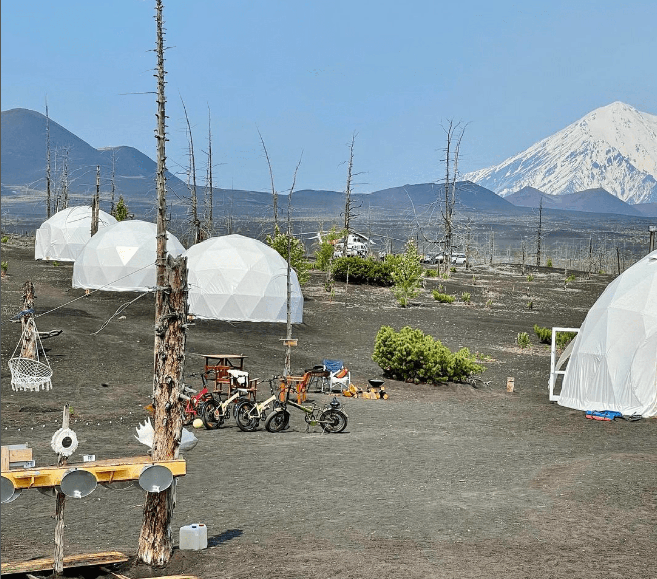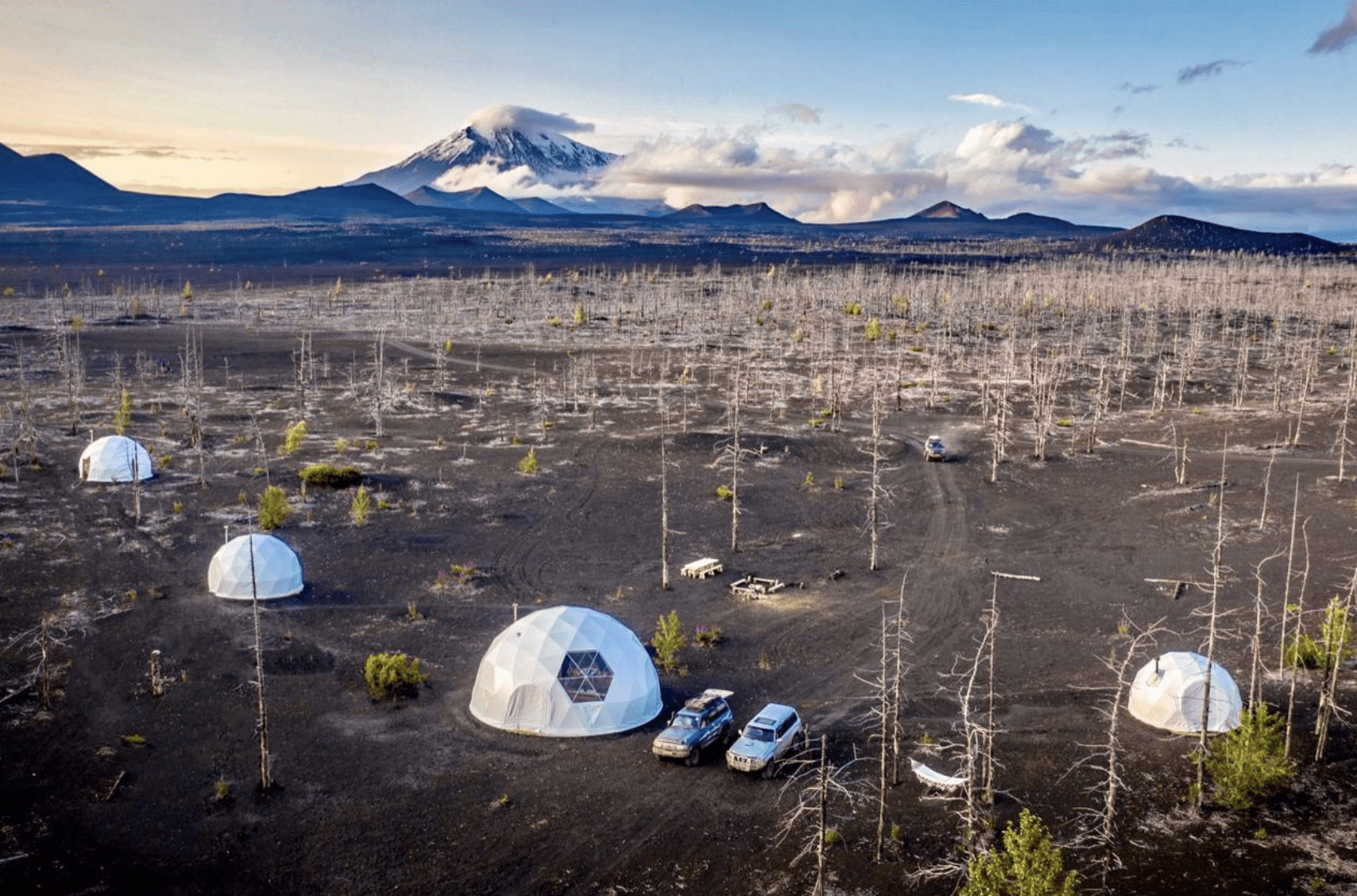 Глэмпинг «Tolbachik camp» - это оазис посреди лавовой пустыни.