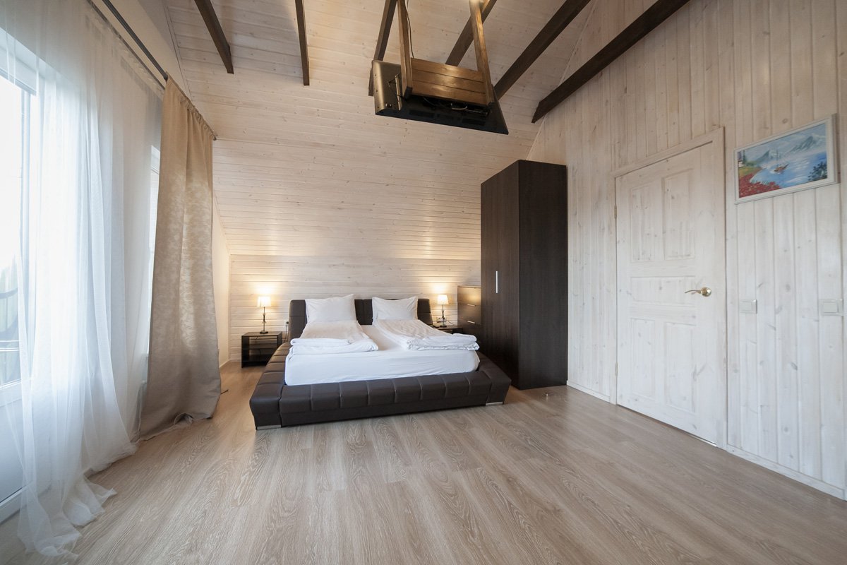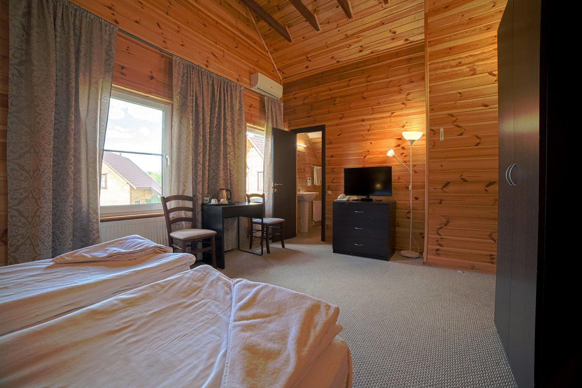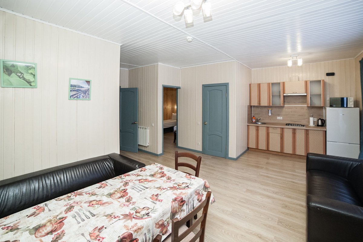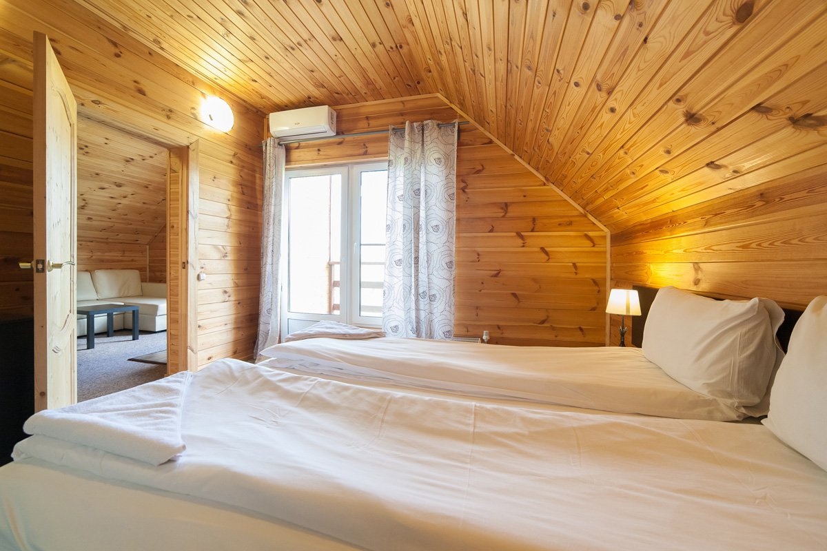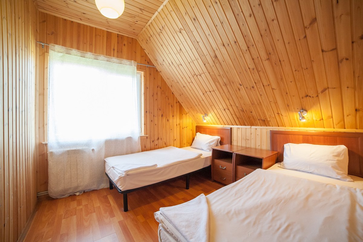 Для отдыхающих представлены гостиничные номера деревянных корпусах и коттеджи от 4 до 8 человек.