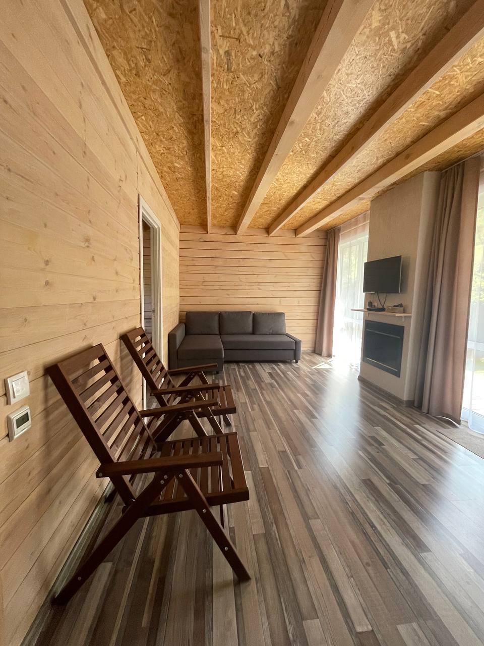 Современный дизайн гостевых домиков располагает к комфортному, тихому семейному отдыху. Мобильная связь на территории базы отдыха отсутствует.