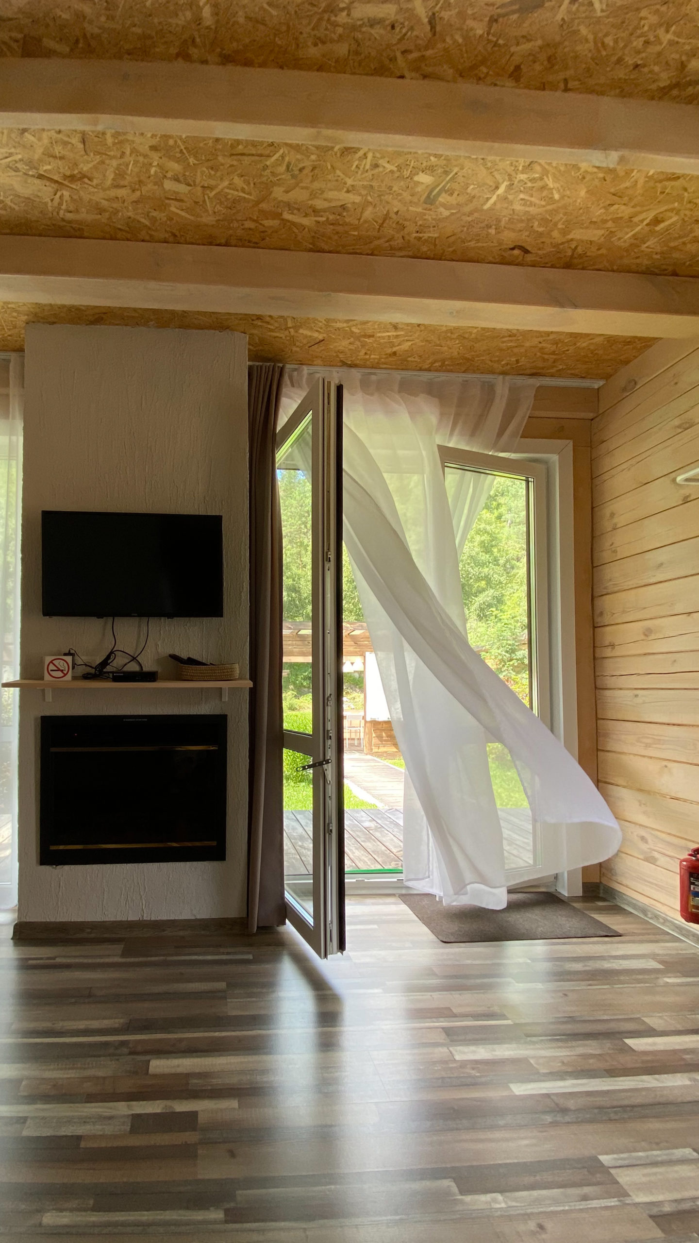 Трёхкомнатный дом с панорамными окнами, три спальных комнаты, большая гостиная, одна ванная комната, открытая терраса, беседка с мангальной зоной рядом с домом.
