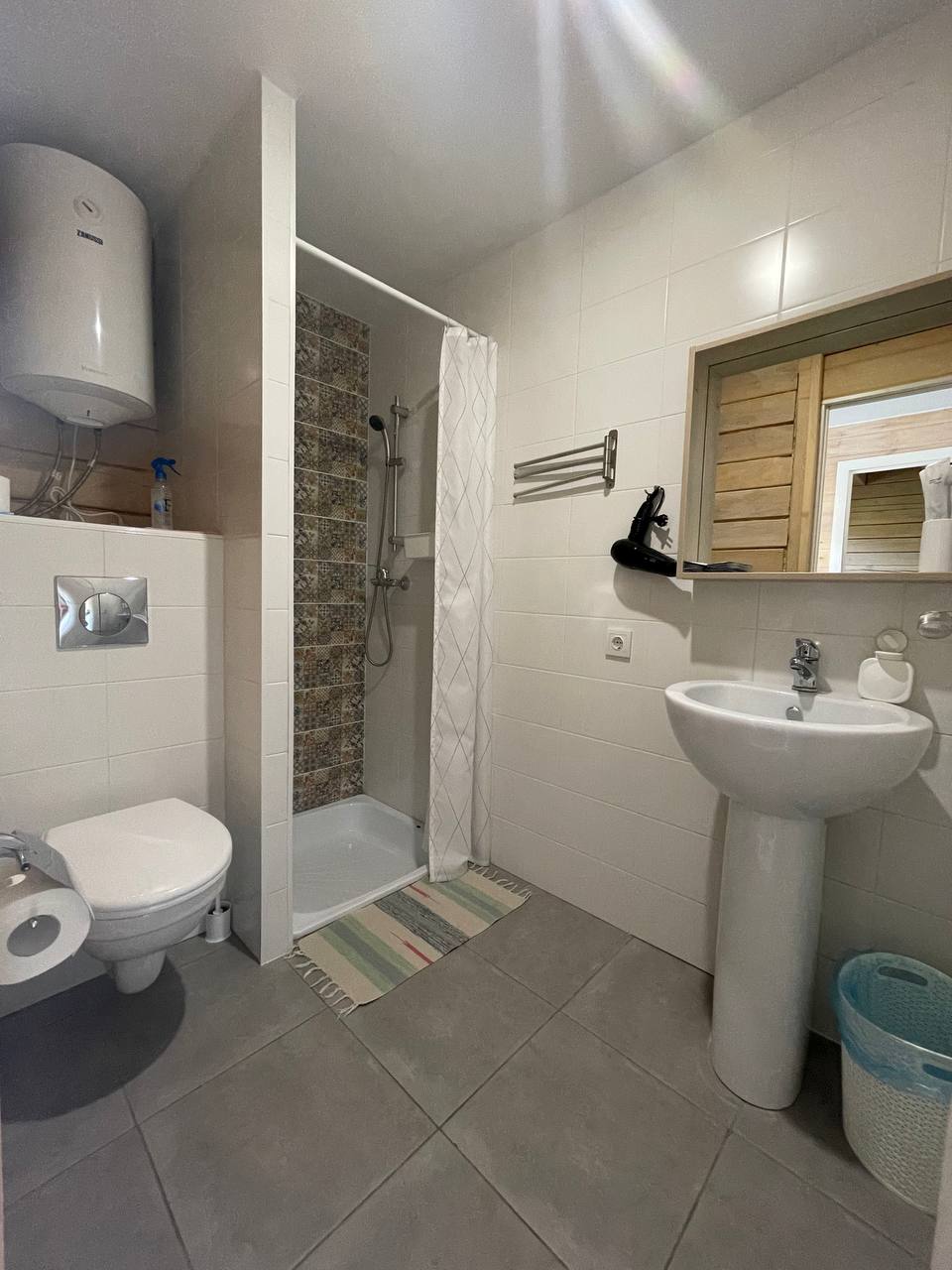 На территории нашей базы отдыха располагаются: 6 уютных отдельно стоящих домиков, 1 дом на два номера с отдельными выходами, 1 большой дом для большой компании. В каждом домике имеется все необходимое для комфортного отдыха: удобная двуспальная кровать, телевизор, кондиционер, ванная комната с душевой. При необходимости дома отапливаются, есть пол с подогревом. Мы также предоставляем ванные принадлежности, полотенца, тапочки, фен.