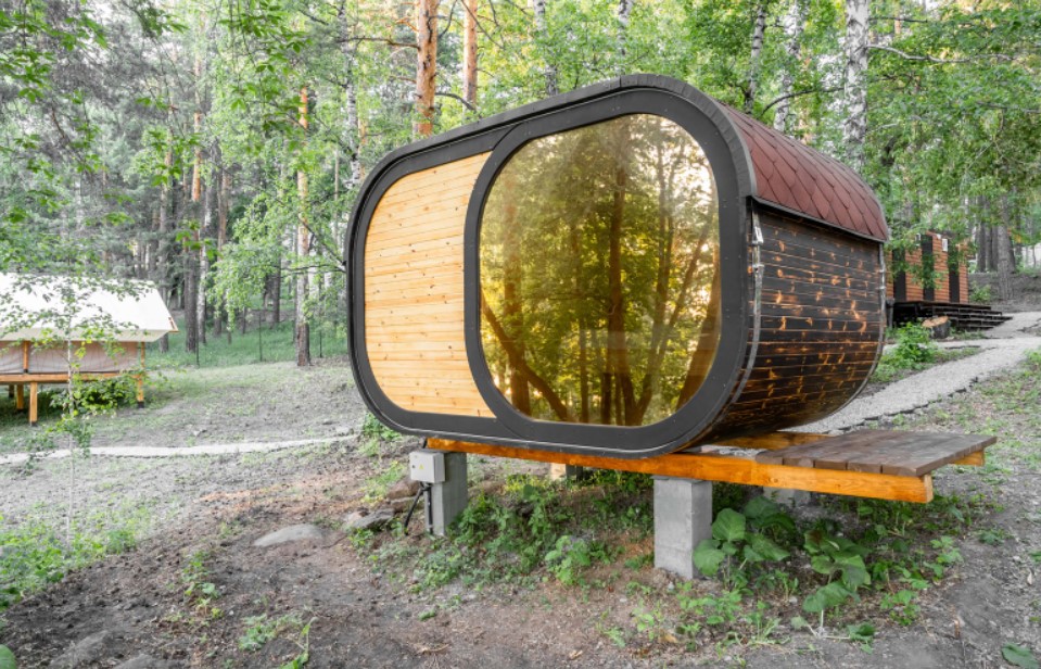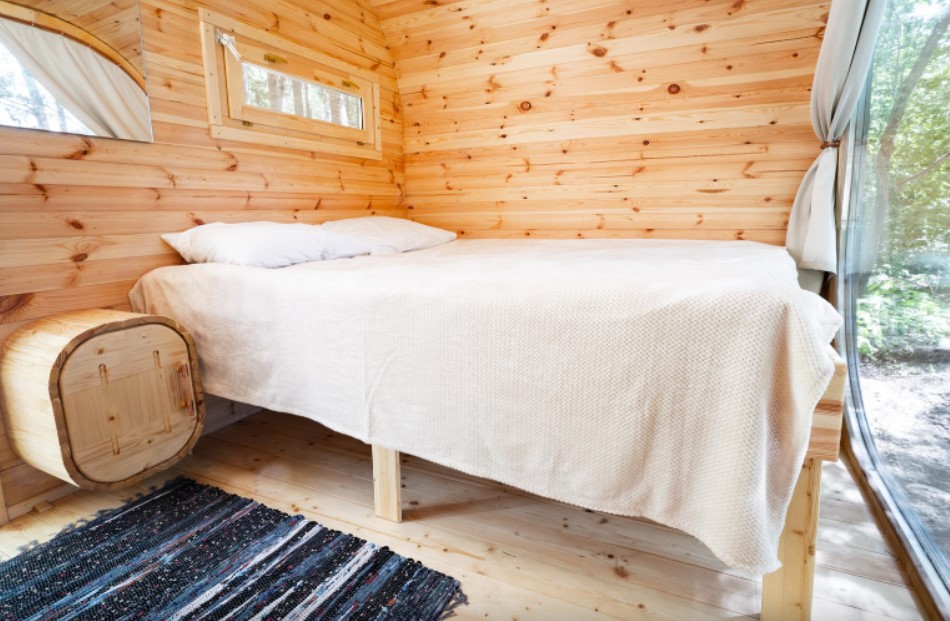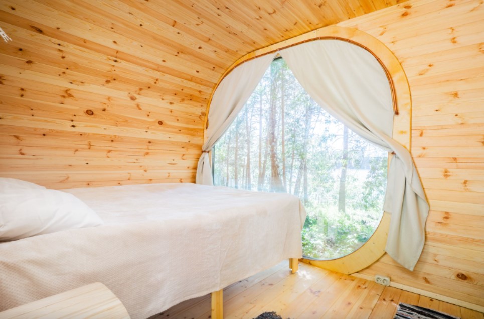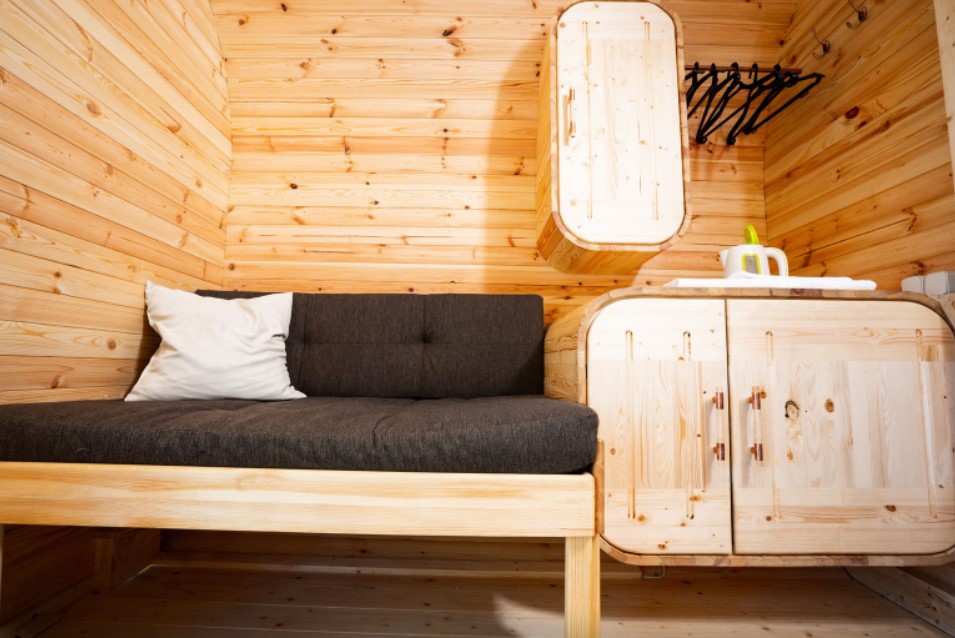 Freedom - это деревянный капсульный модуль с большим панорамным окном, из которого открывается живописный вид на озеро Теренкуль. Домик создан из экологически чистых материалов, он уютный и тёплый. Внутри оборудован кондиционером, электричеством, есть двуспальная кровать и раскладной диванчик.