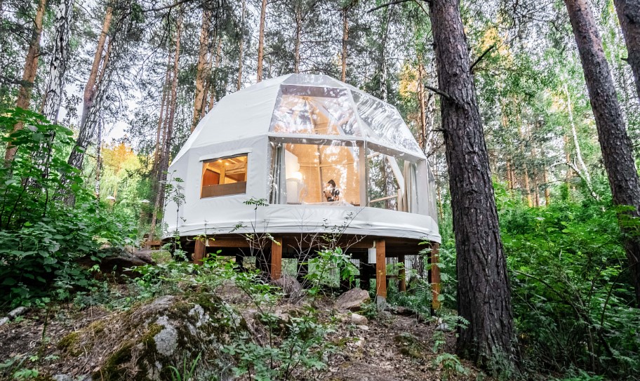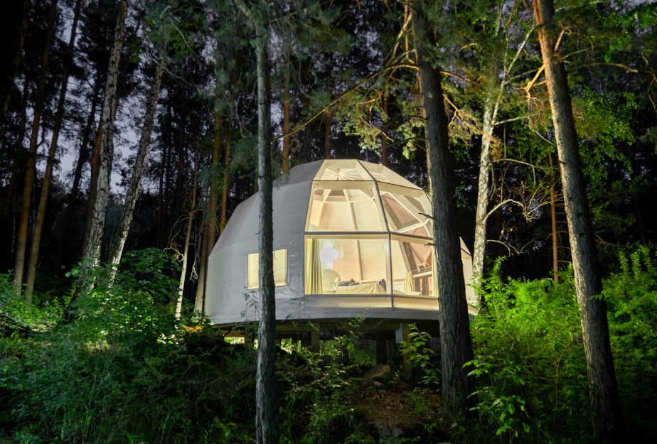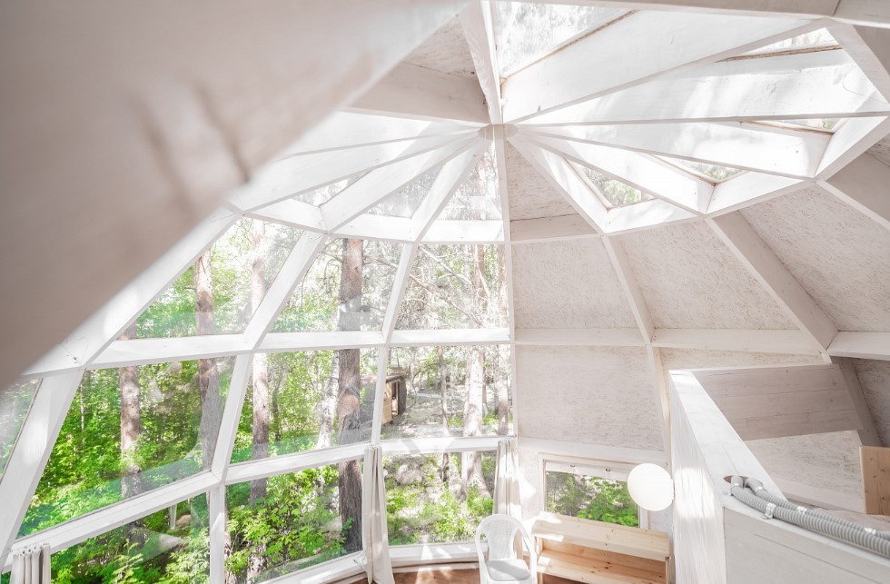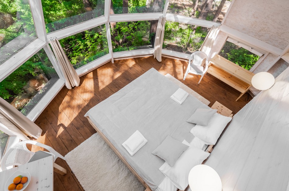 Домики расположены в наименее проходимом месте. Отдыхая в сфере, вы сможете закрыть купол непрозрачной шторой когда пожелаете.