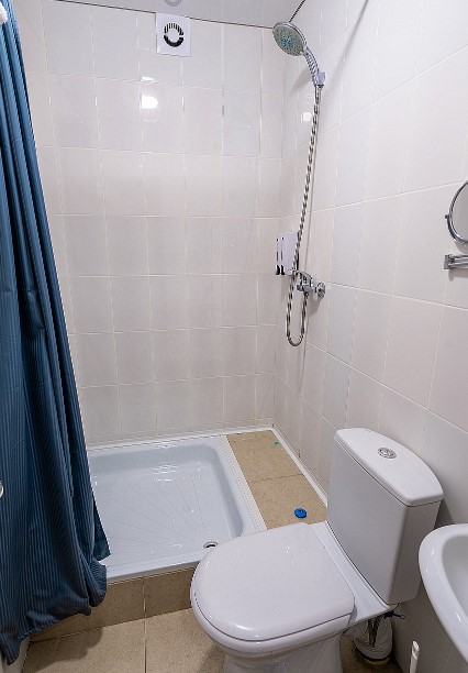 Туалет и душ расположены в отдельном строении, для каждого домика — свой санузел, запирающийся на ключ.