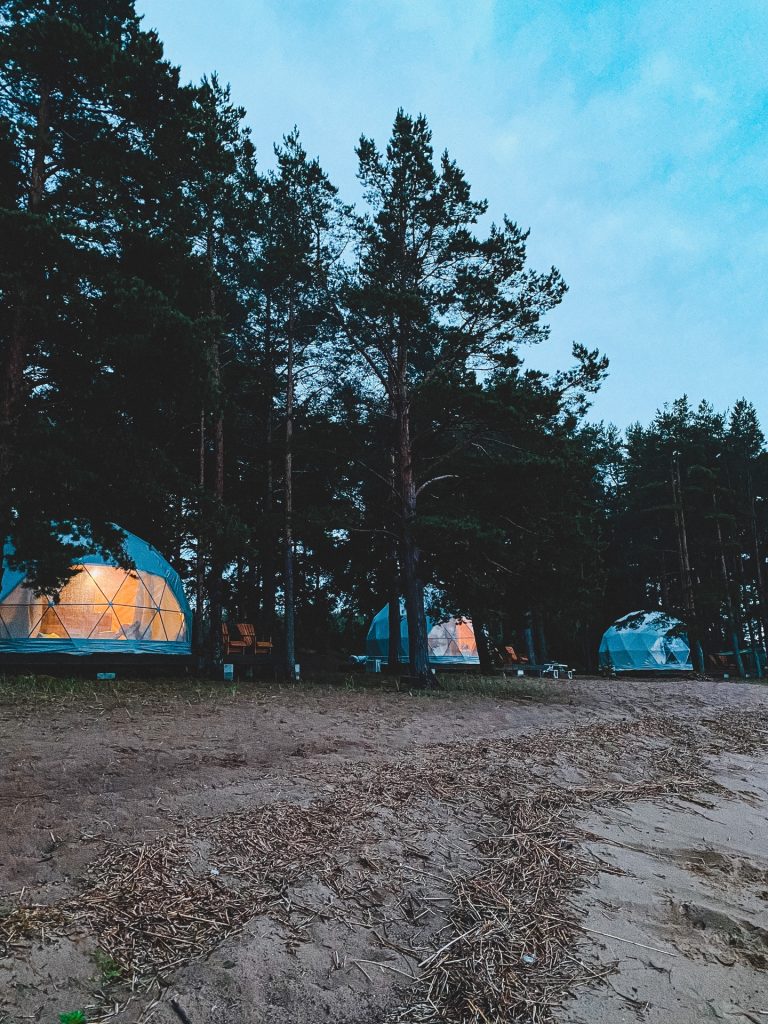 4 геокупола установлены на первой линии. Вид на озеро и закаты из всех геокуполов.