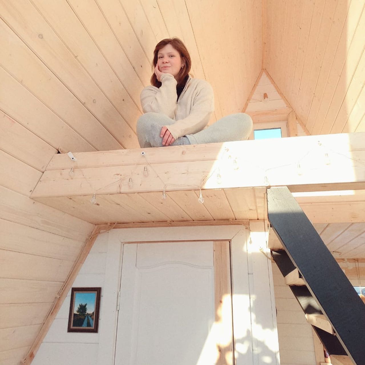 — на втором этаже роскошное спальное место 200*200 на двоих, а внизу есть диван в гостиной, который раскладывается в двуспальное место и отдельная спальня двумя односпальными кроватями;