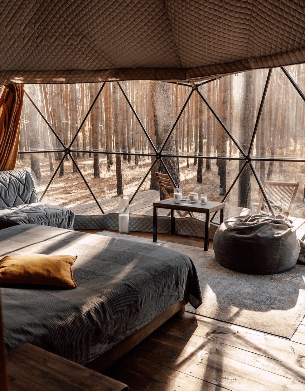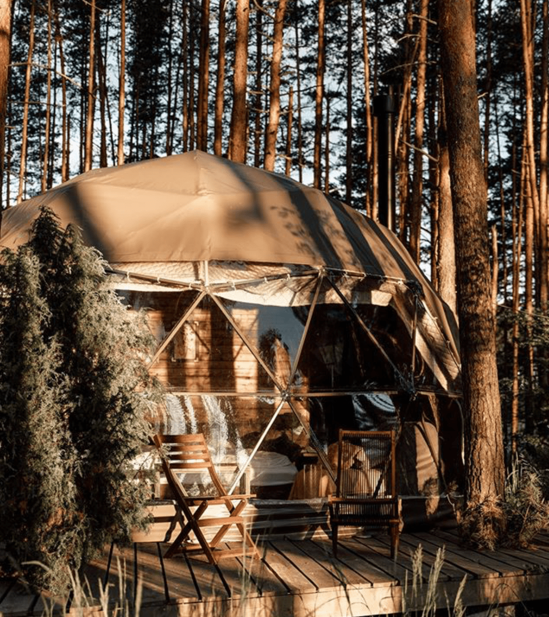 Вы находитесь в самом сердце природы, а мы позаботились о вас — есть всё, что может пригодиться, включая тёплый плед, дождевик, интересная книга и даже термокружка. Да, и мы уже прогнали комаров и клещей.