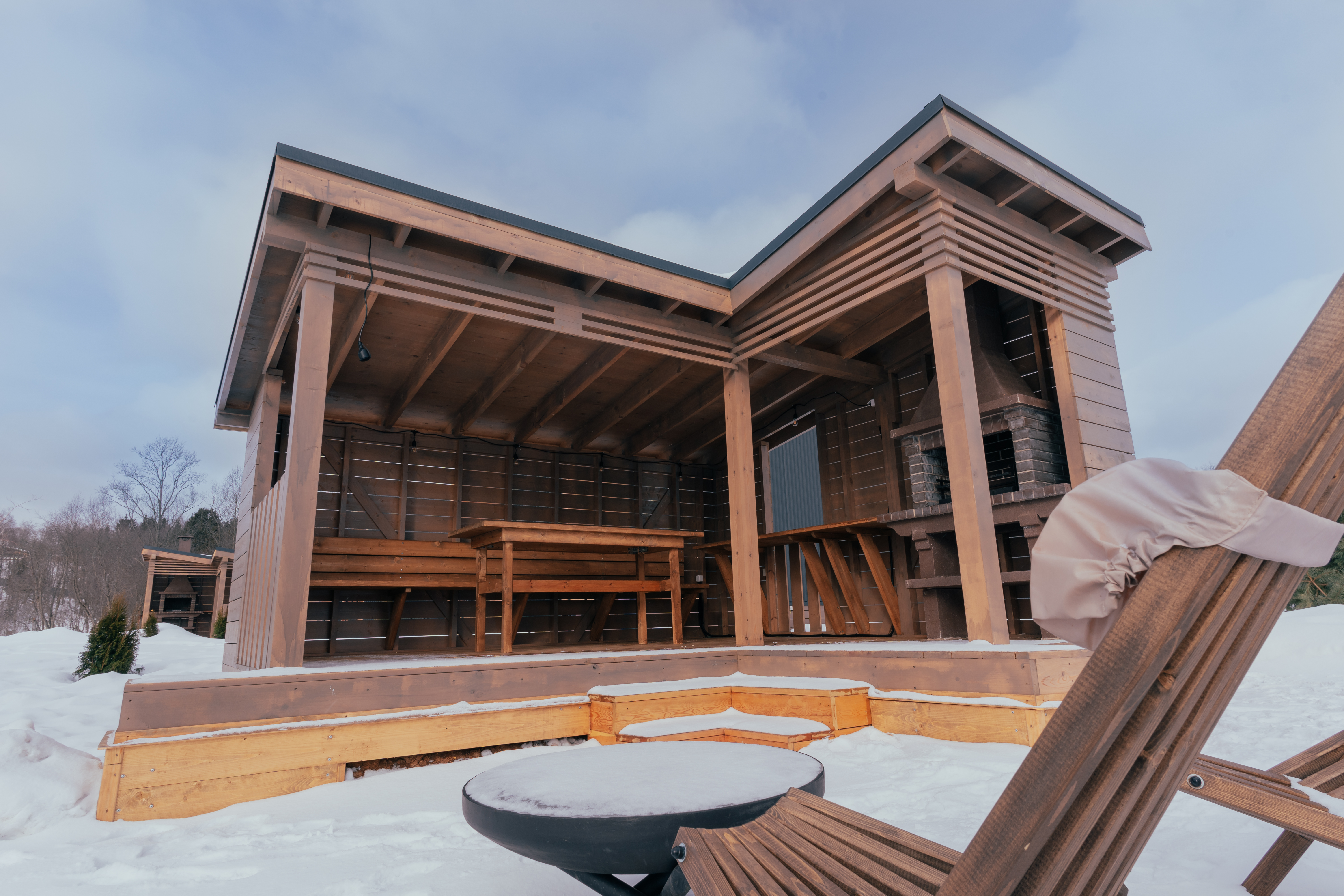 Просторный двухэтажный лодж c собственной беседкой с костровой зоной BBQ – идеально для семейного отдыха или компании друзей от 2 до 4 гостей.