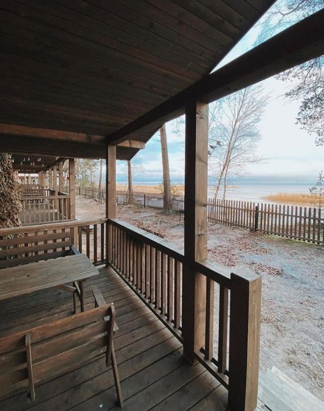 • Рядом с домиком находится персональный мангал, шампуры и решетки можно взять у администратора и приобрести уголь. На террасе можно насладиться лесной атмосферой и заливом вдалеке