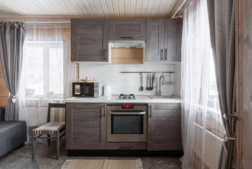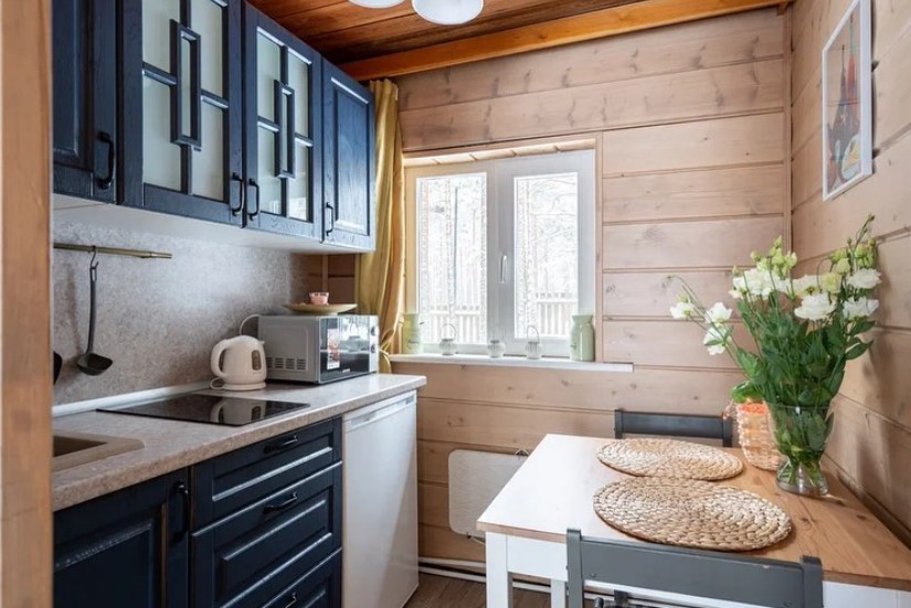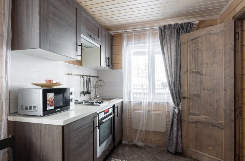 В каждом домике есть своя кухня со всем необходимым инвентарем и бытовой техникой