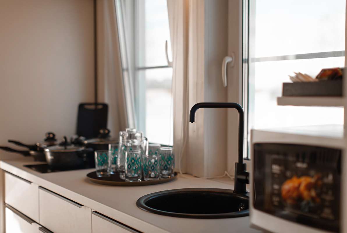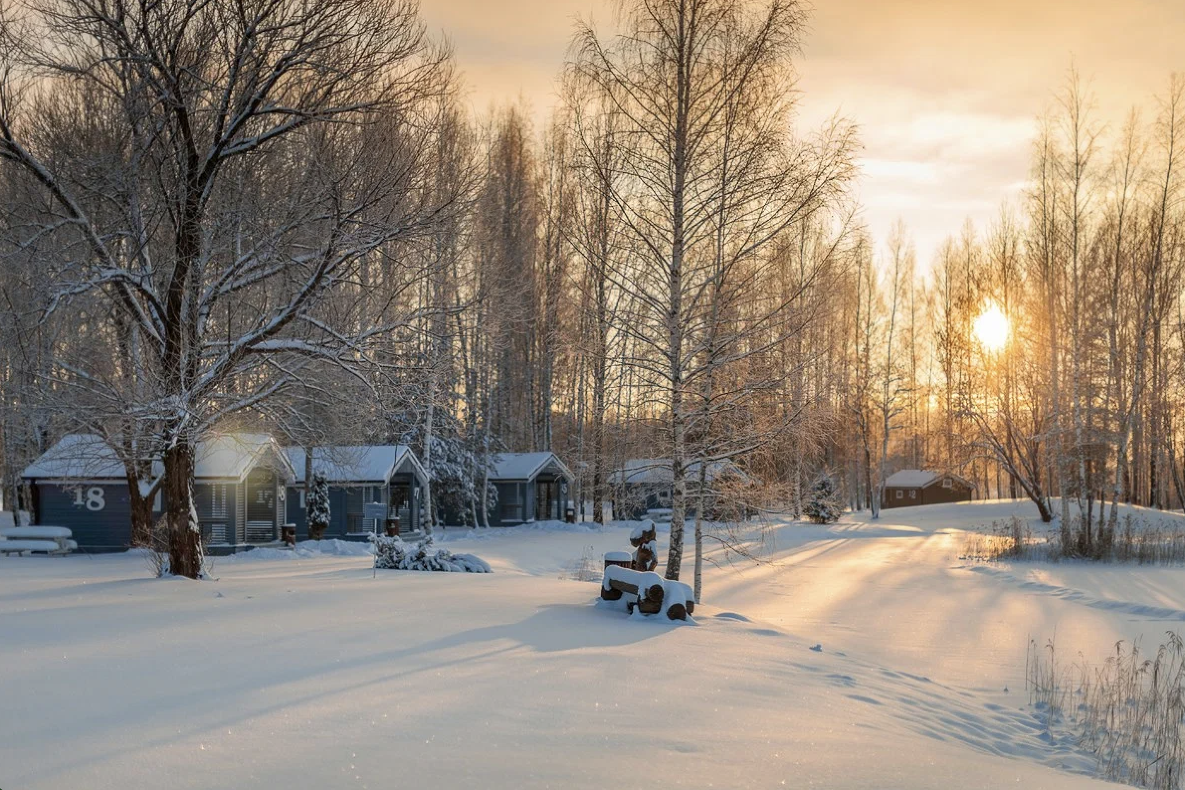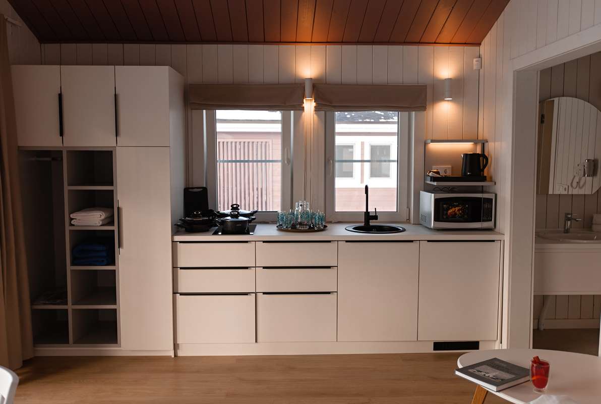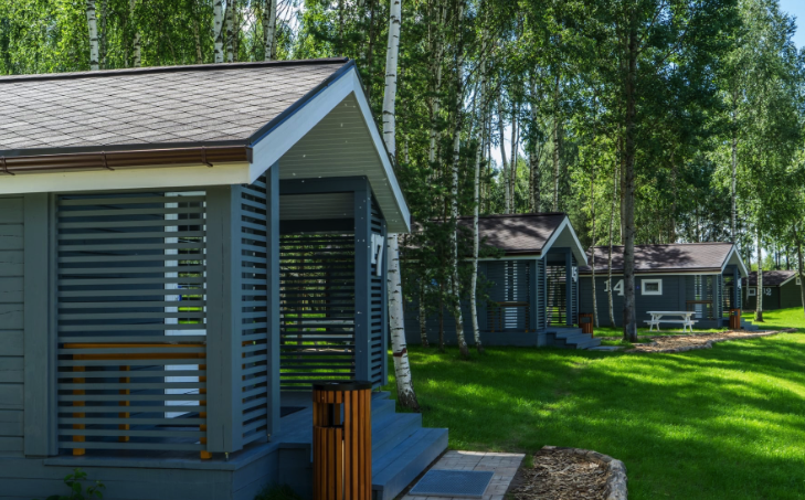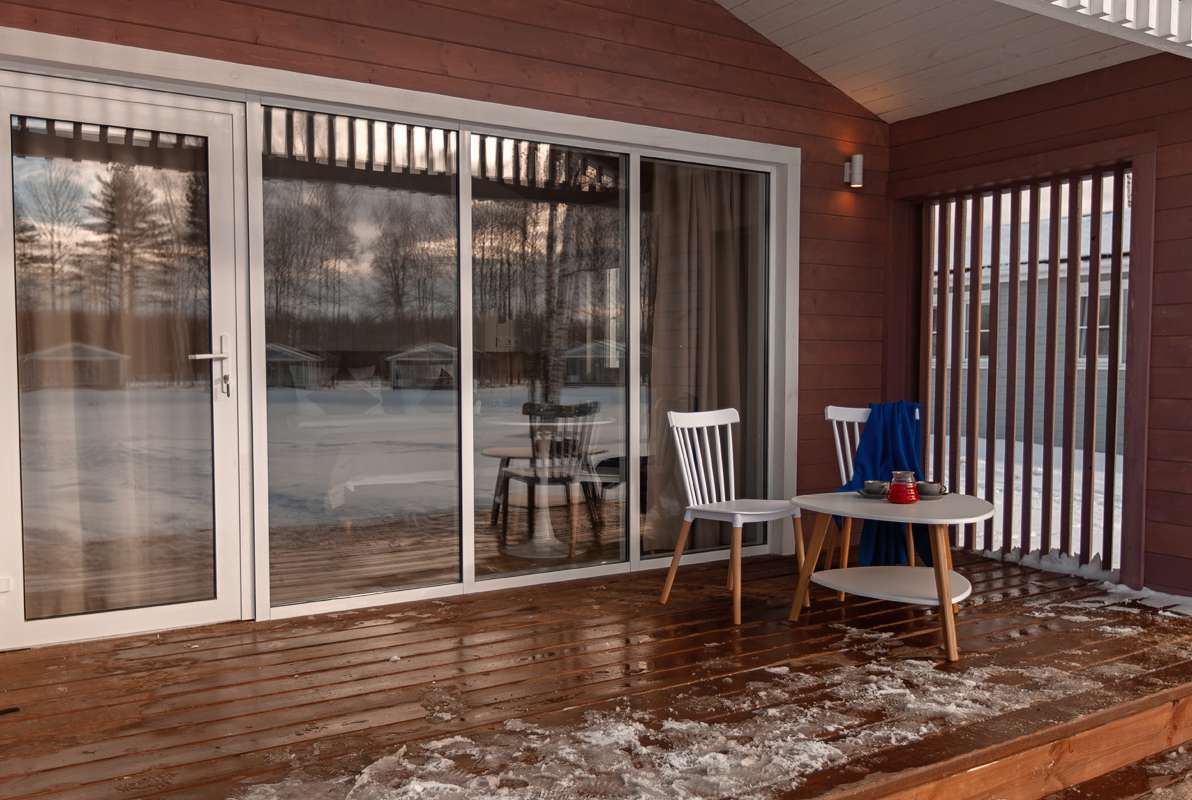 Каждый домик рассчитан на проживание четырёх человек. Уют создаётся за счёт интерьера, оформленного в скандинавском стиле:
