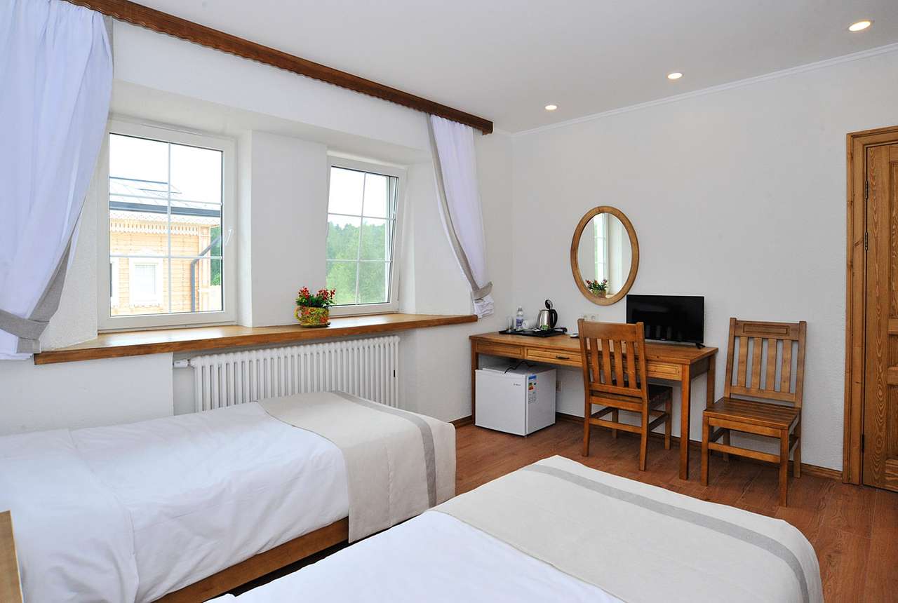 Интерьер номеров выполнен в стиле классических загородных отелей с использованием натуральных экологически чистых материалов. В номере работает WI-FI