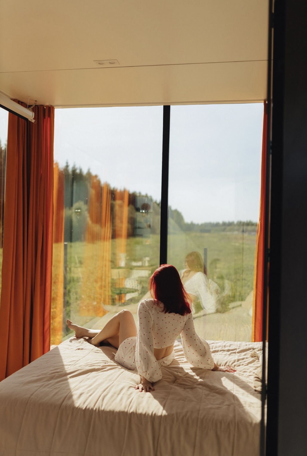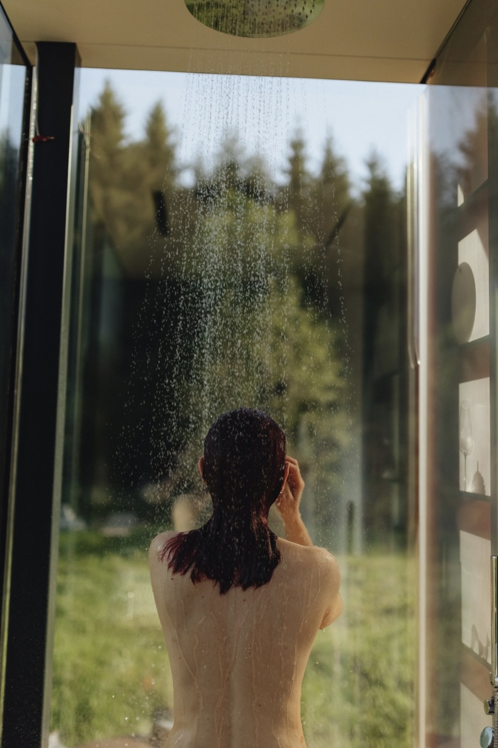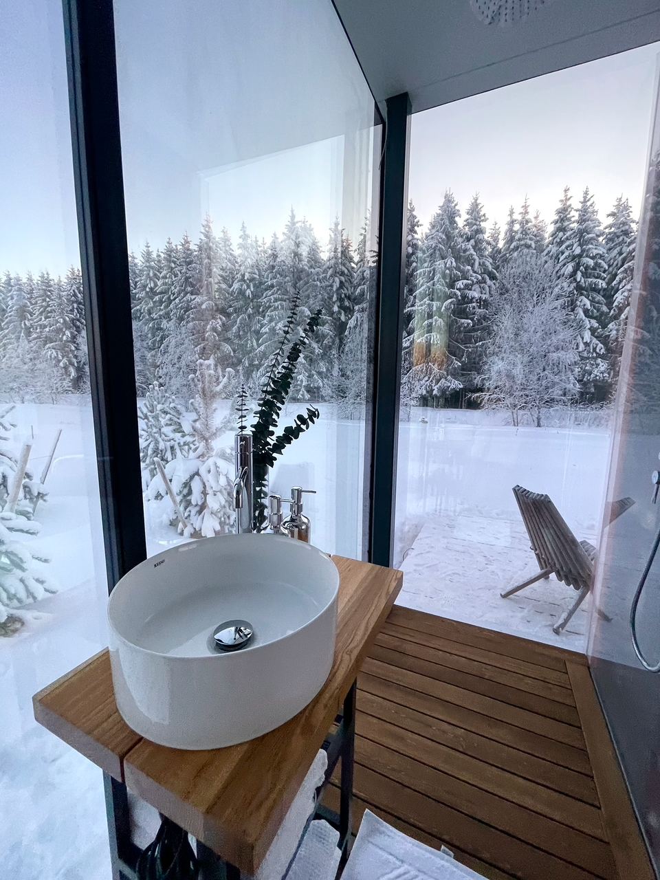 Особенностью этого места является уникальный зеркальный дом с панорамными окнами, которые позволяют наслаждаться красотой природы, не выходя из дома. А прозрачная душевая добавляет особый шарм и позволяет почувствовать себя частью природы.