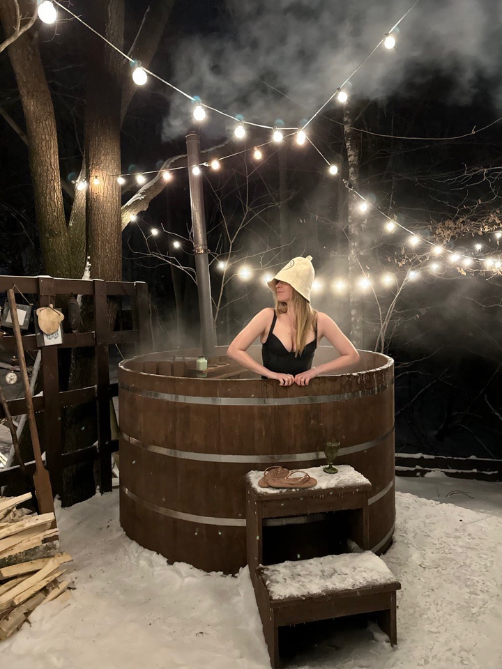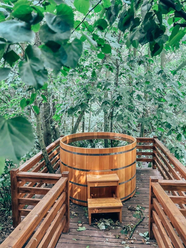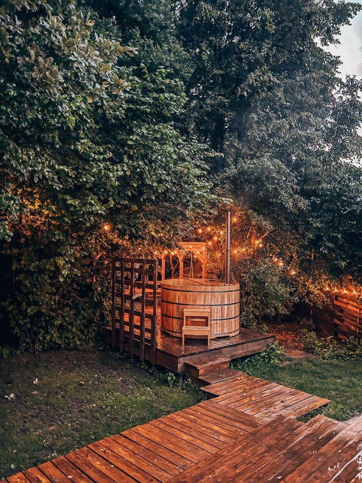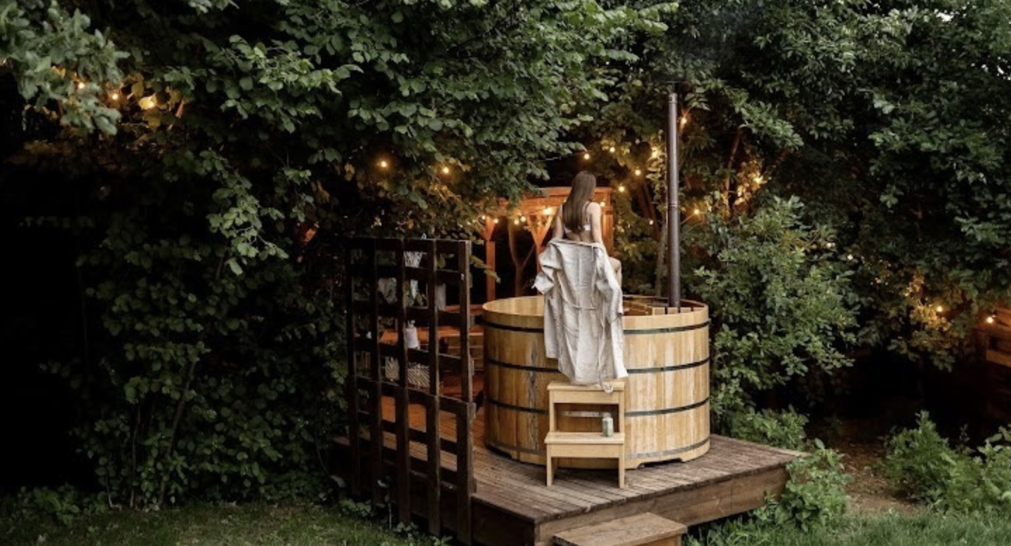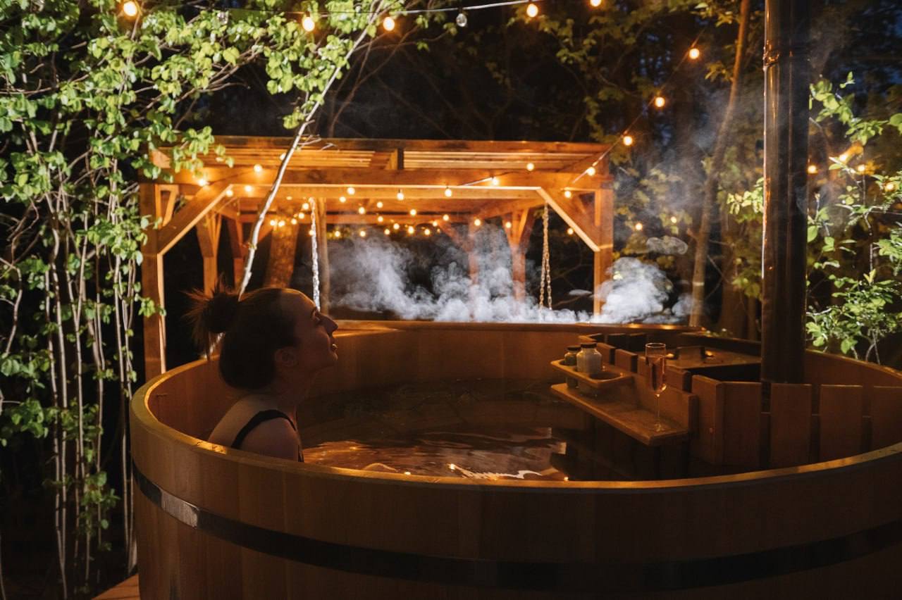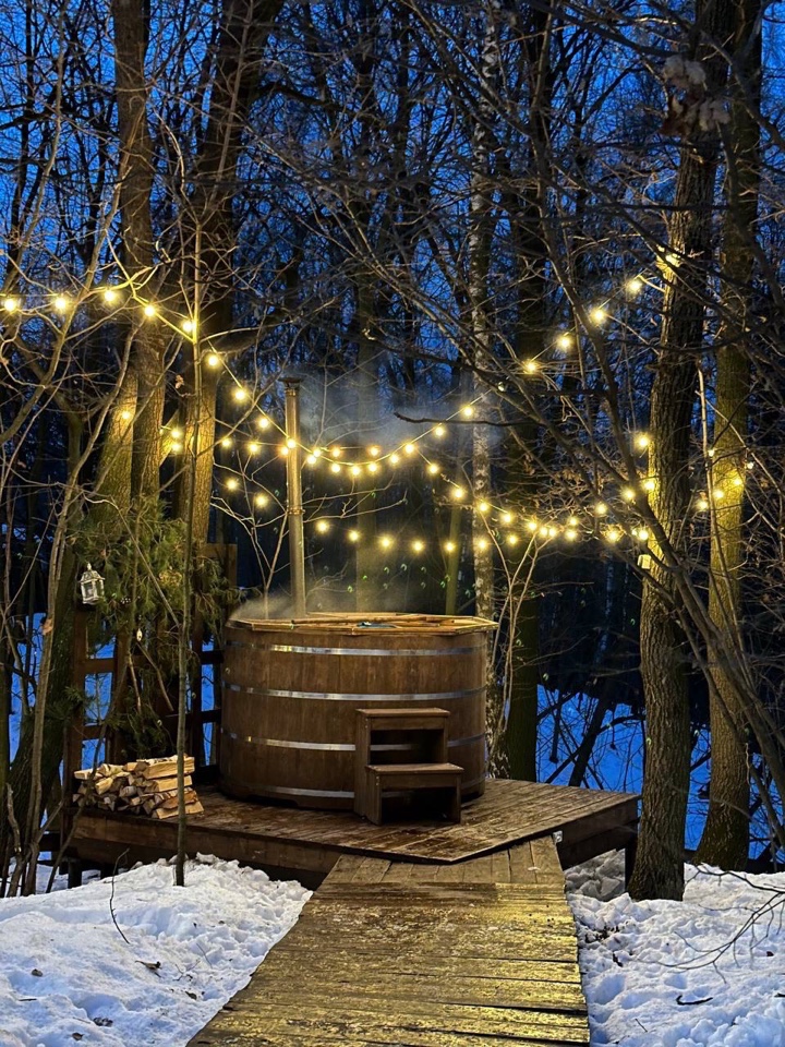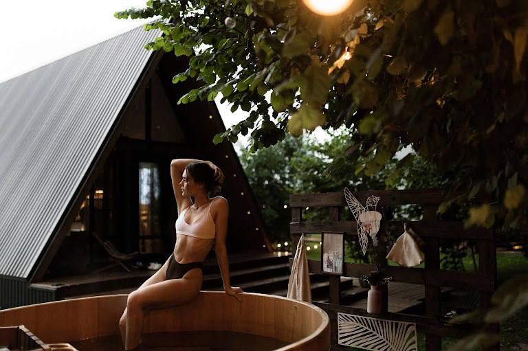 В 5 - 8 метрах от а-фреймов располагаются просторные фурако из натурального дерева, в которых можно не только расслабиться, но и получить пользу для организма.