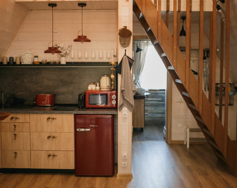 В каждом домике есть кухня, оборудованная всем необходимым.