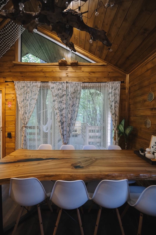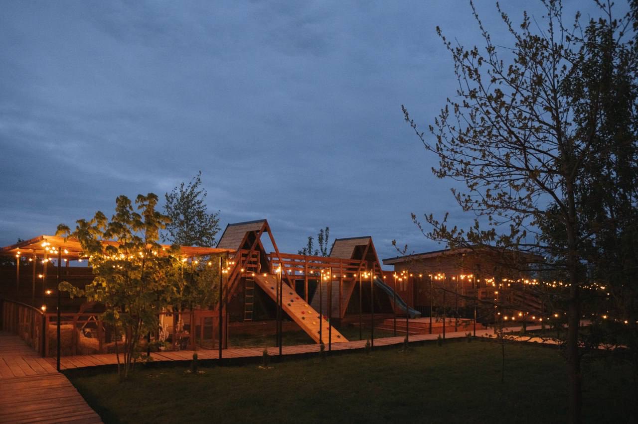 В каждом домике есть все необходимое для комфортного проживания: проектор, музыка, кухня с посудой, душ и все принадлежности, эксклюзивный интерьер, мангальная зона и качели.