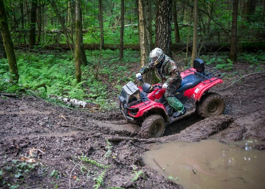 Участники приобретают навыки управления квадроциклом проходя разные испытания: