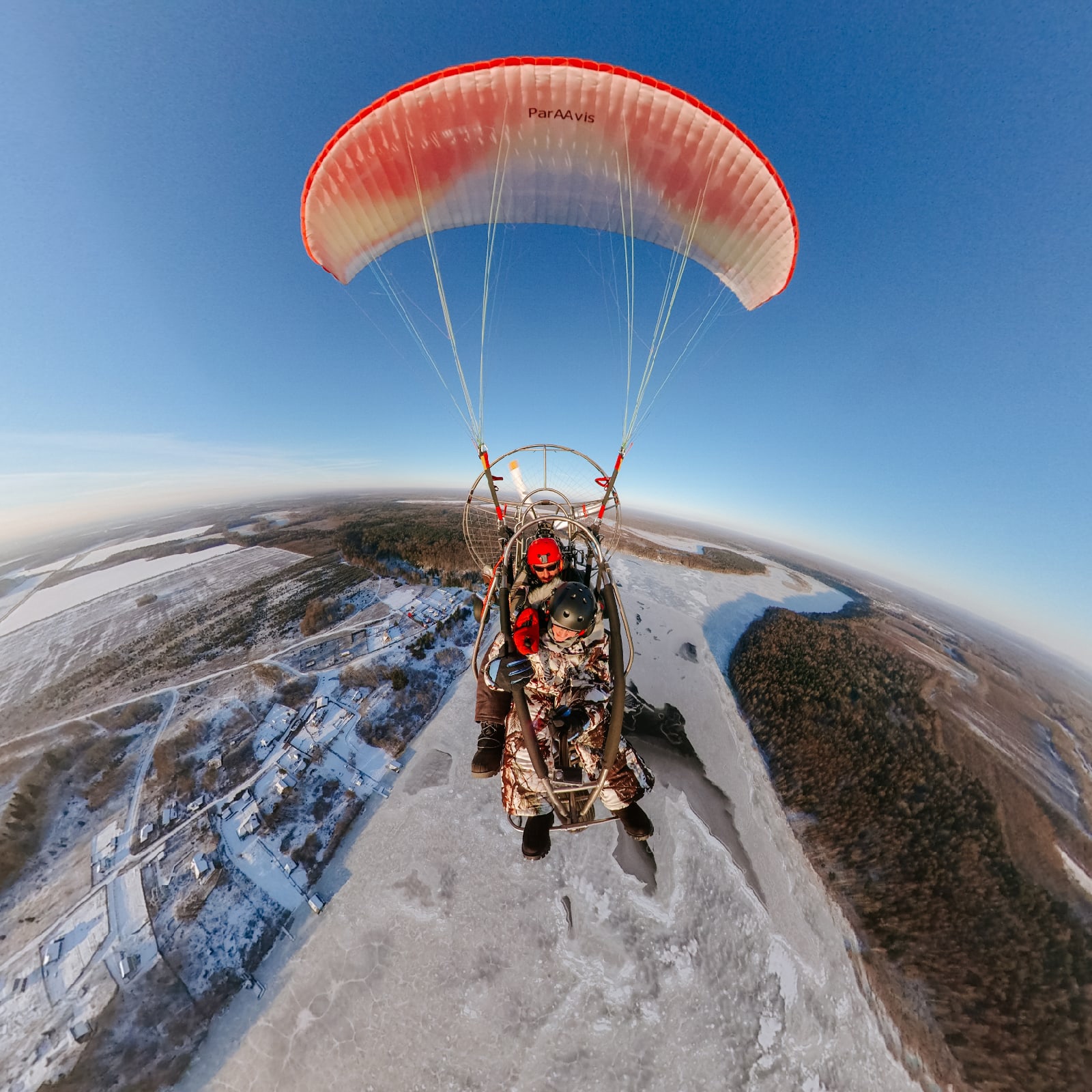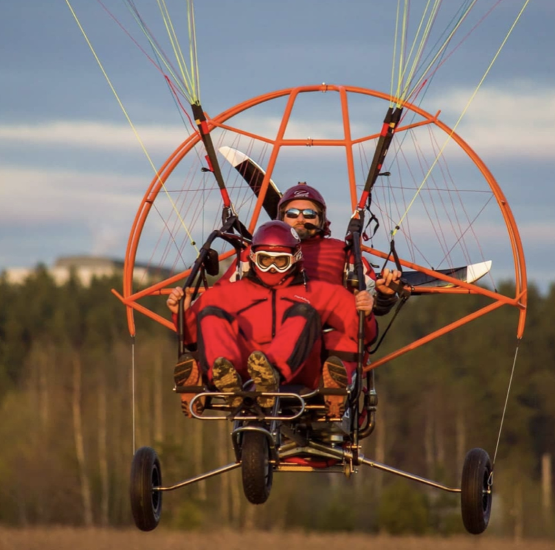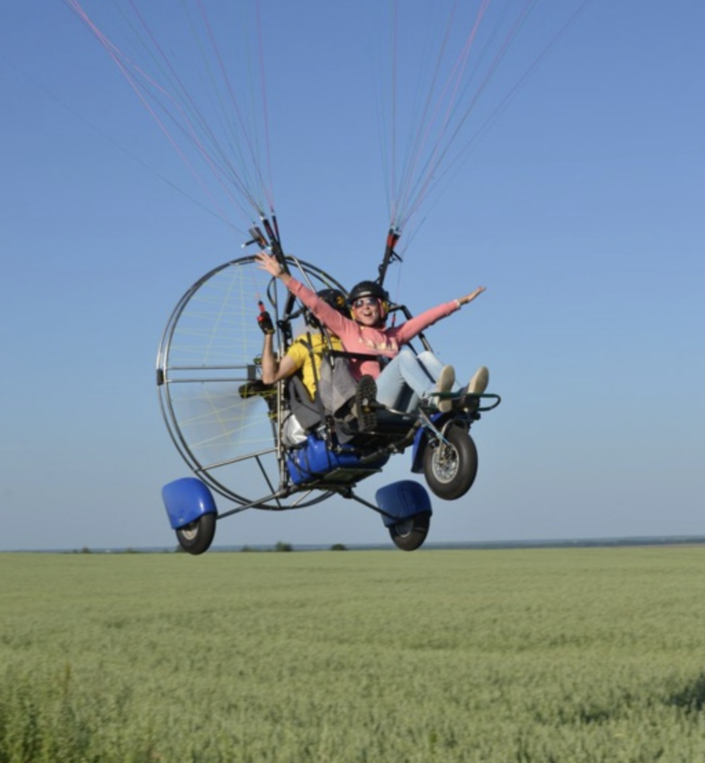 С нами вы можете ощутить парящий полет, максимально приближенный к полету птицы на безмоторном двухместном параплане или подняться до облаков на двухместном моторизированном паратрайке.