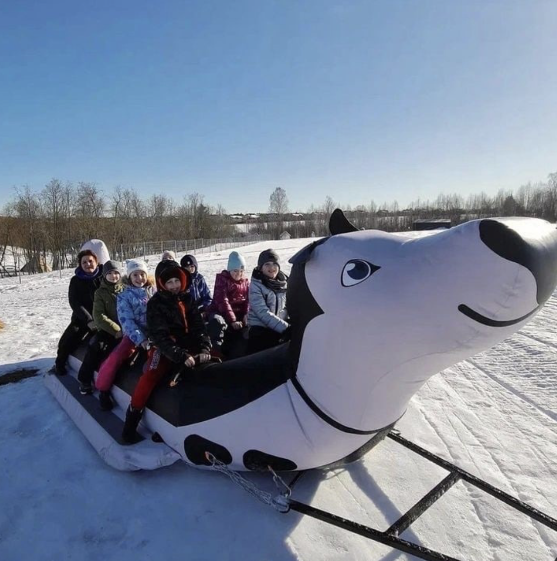 Увлекательный зимний аттракцион «хаски-банан» прокатит вас с ветерком по специально подготовленной зимней трассе и подарит незабываемые эмоции и заряд энергии. Максимальная скорость снегохода зависит от возрастной категории гостей.