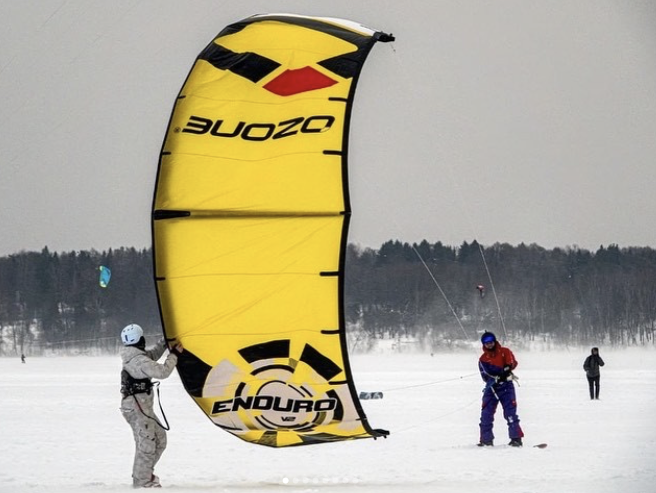 Обучение прогрессирующих в группе возможно не более 2х человек с выдачей полных комплектов (кайт, лыжи, ботинки, трапеция, шлем, щитки, ледобур).